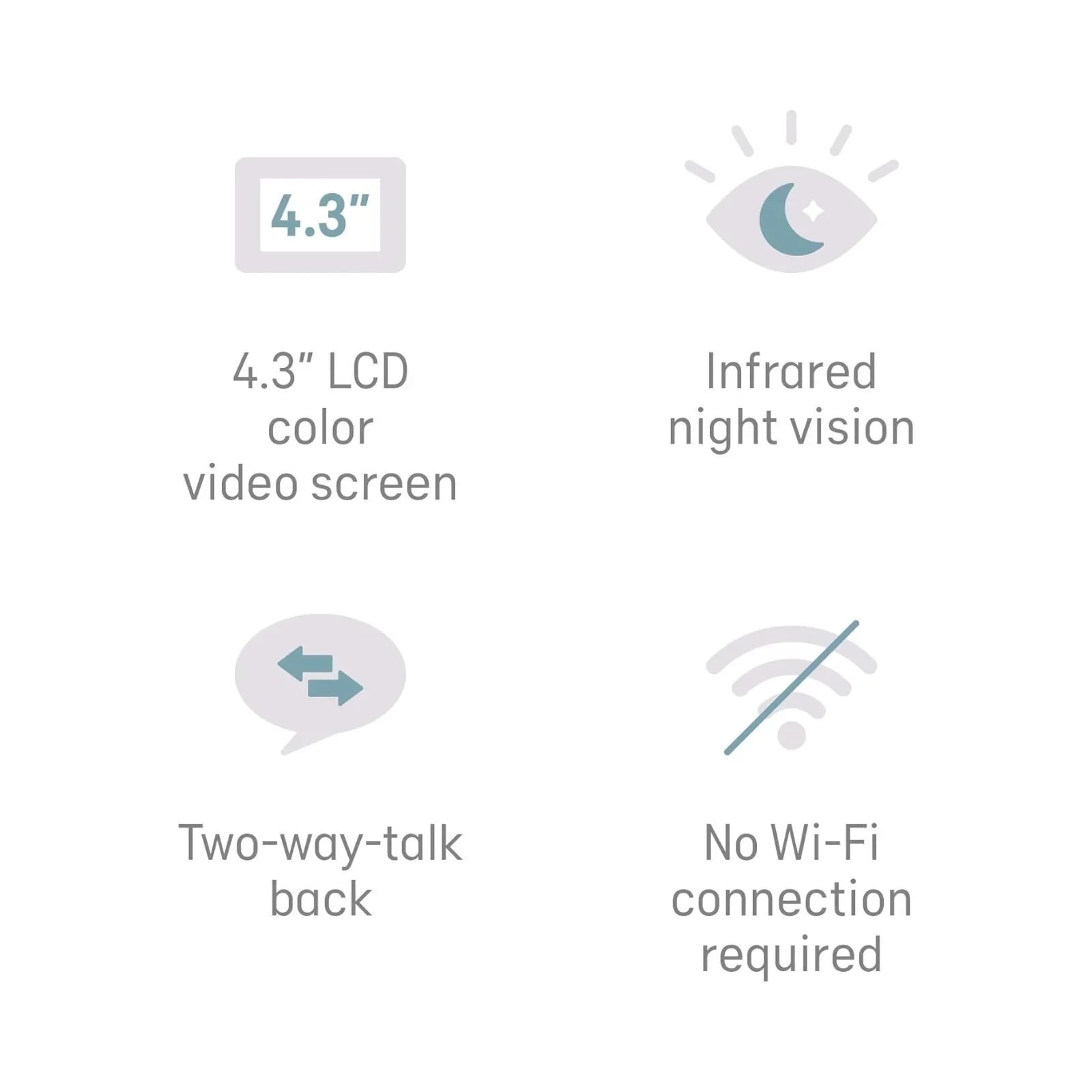 • Two-way talk feature: Allows you to comfort your baby remotely from another room.