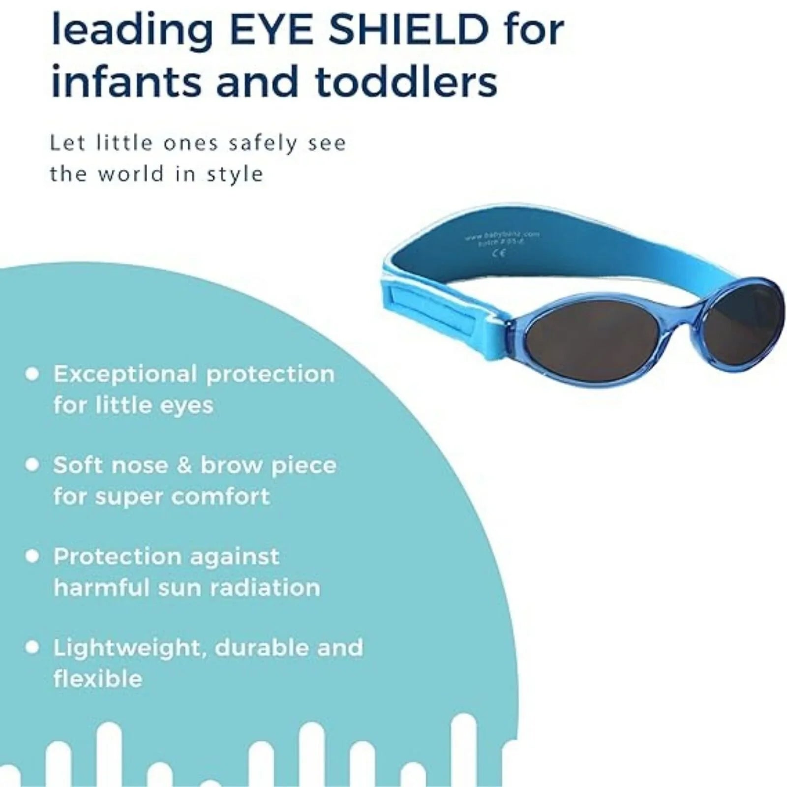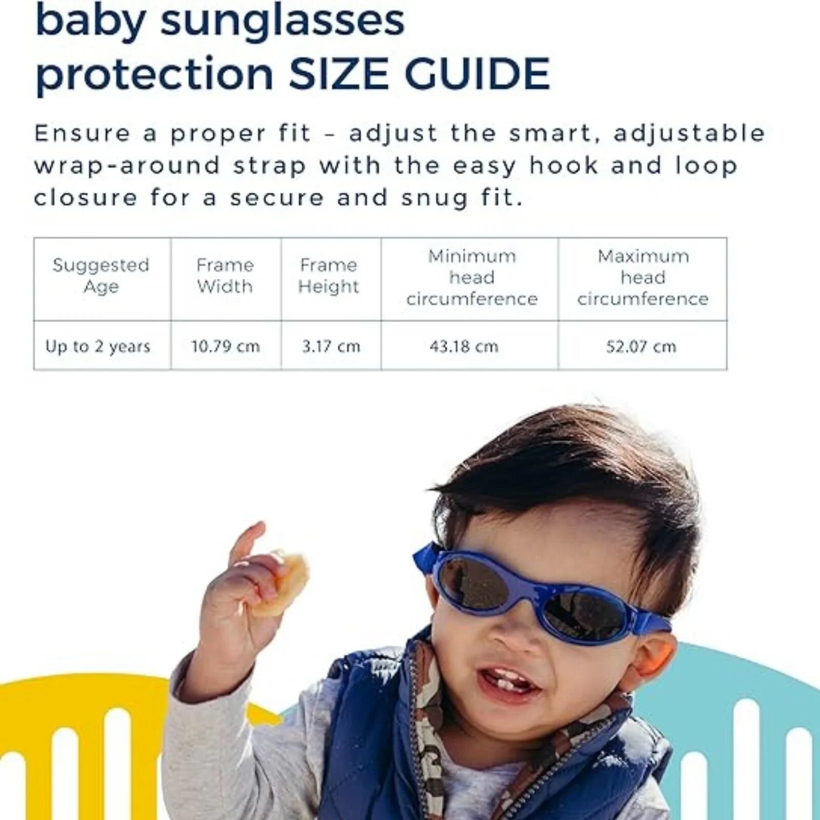 The Bubzee Baby Banz Sunglasses are designed to provide UVA and UVB sun protection for infants and babies aged 0-2 years.
