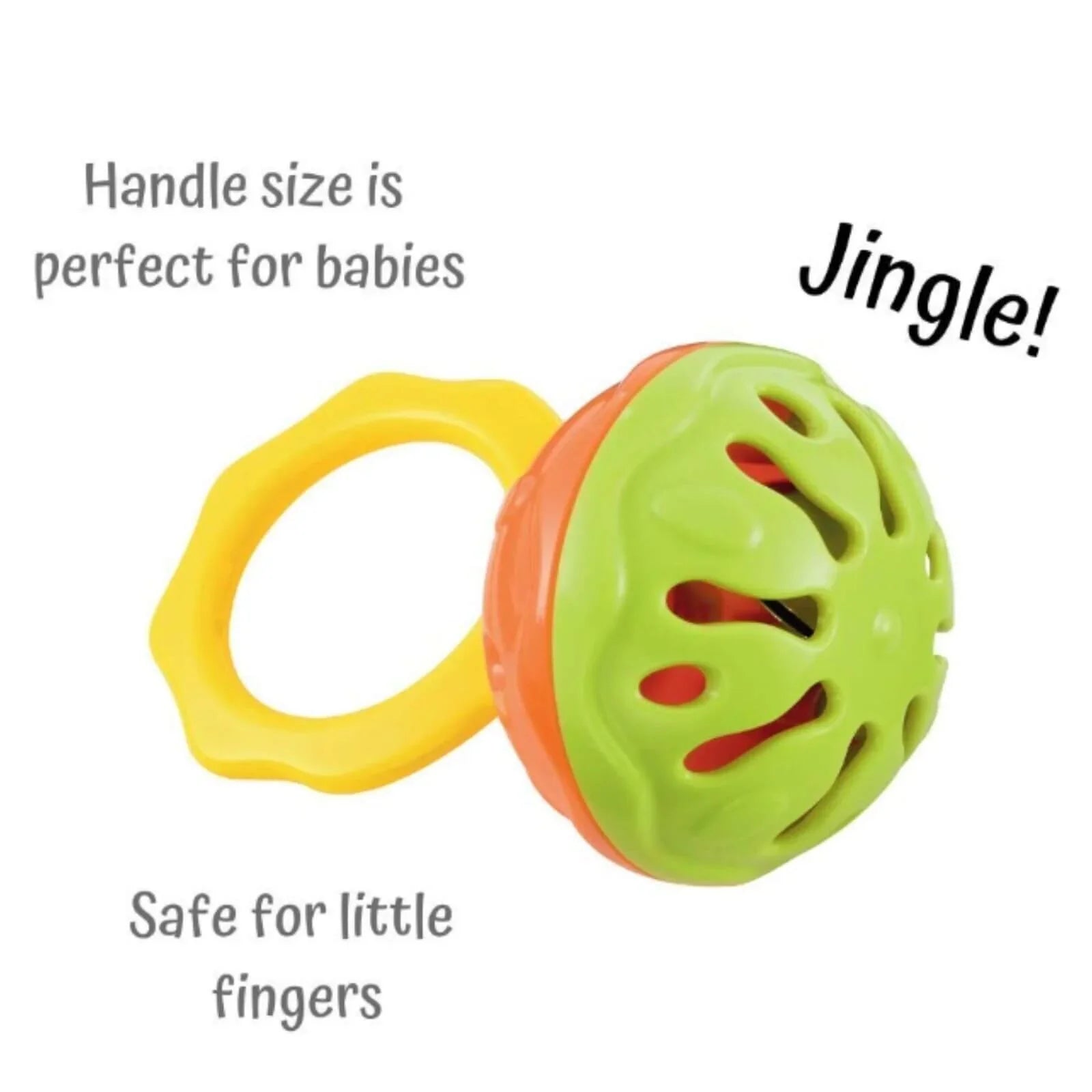 The jingles are safely encased away from little fingers in the bright, colourful shell.