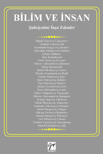 İÇİNDEKİLER ÖNSÖZ BİZİM İLK ÜNİVERSİTEMİZ: M.V LOMONOSOV HEKİMLİKTEN SÖZLÜKÇÜLÜĞE UZANAN BİR YAŞAM: VLADİMİR DAL RUS TARİH FELSEFESİNDE K.S AKSAKOV DİL VE DÜŞÜNCE: A.A POTEBNYA MİLLİ KÜLTÜRÜN KAHRAMANI ÇOKAN VALİHANOV ABAY: ADIMI 'İNSAN' KOYMUŞLAR NASIL CAHİL OLAYIM? RUS YAZAR VE DÜŞÜNÜR VASİLİ ROZANOV A.A ŞAHMATOV: DİL TARİHİ- MİLLET TARİHİ KAZAK'IN İRGE TAŞI, ALAŞ'IN SESİ: AHMET BAYTURSINULI SÖZ MİRASININ KORUYUCUSU: D.N. UŞAKOV KÜLTÜREL MİRASI KORUMA BAĞLAMINDA RERİH (ROERİCH) PAKTI GUSTAV GUSTAVOVİÇ ŞPET: YAŞAMI VE FELSEFESİ BİLİM İNSANI OLMAK: SOKOLOV KARDEŞLER SON RUS FİLOZOF: ALEKSEY LOSEV 'ETNOLOJİ, TARİH, DİL' BÜTÜNLÜĞÜ BAĞLAMINDA B.A. LARİN XX. YY. RUS DİLBİLİMİNDE TEK KİŞİLİK BİR ENSTİTÜ: V.V. VİNOGRADOV BİLİM AHLÂKI VE N.A. BERNŞTEYN ROMAN GİBİ HAYAT: ROMAN YAKOBSON VE BİLİMSEL MİRASI HAYATINI HAZAR TARİHİNE ADAMIŞ BİR BİLİM İNSANI: M.İ. ARTAMONOV EDEBİYAT BİLİMİNDE BÜTÜNSEL SİSTEMİN KURUCUSU OLARAK GENNADİY POSPELOV İLİMLE HAYATA TUTUNAN D.S. LİHAÇEV SİBİRYA-ALTAY ARKEOLOJİSİ VE A.P. OKLADNİKOV YERADBİLİM VE E.M. MURZAYEV EKOLÜ BİR FİKİR MİMARI: YURİ LOTMAN BİLİM VE İNSAN: V.G. MARANTSMAN KAYBOLAN MİLLETİN SESİ: MURAD ADJİ Tanıtım Metni