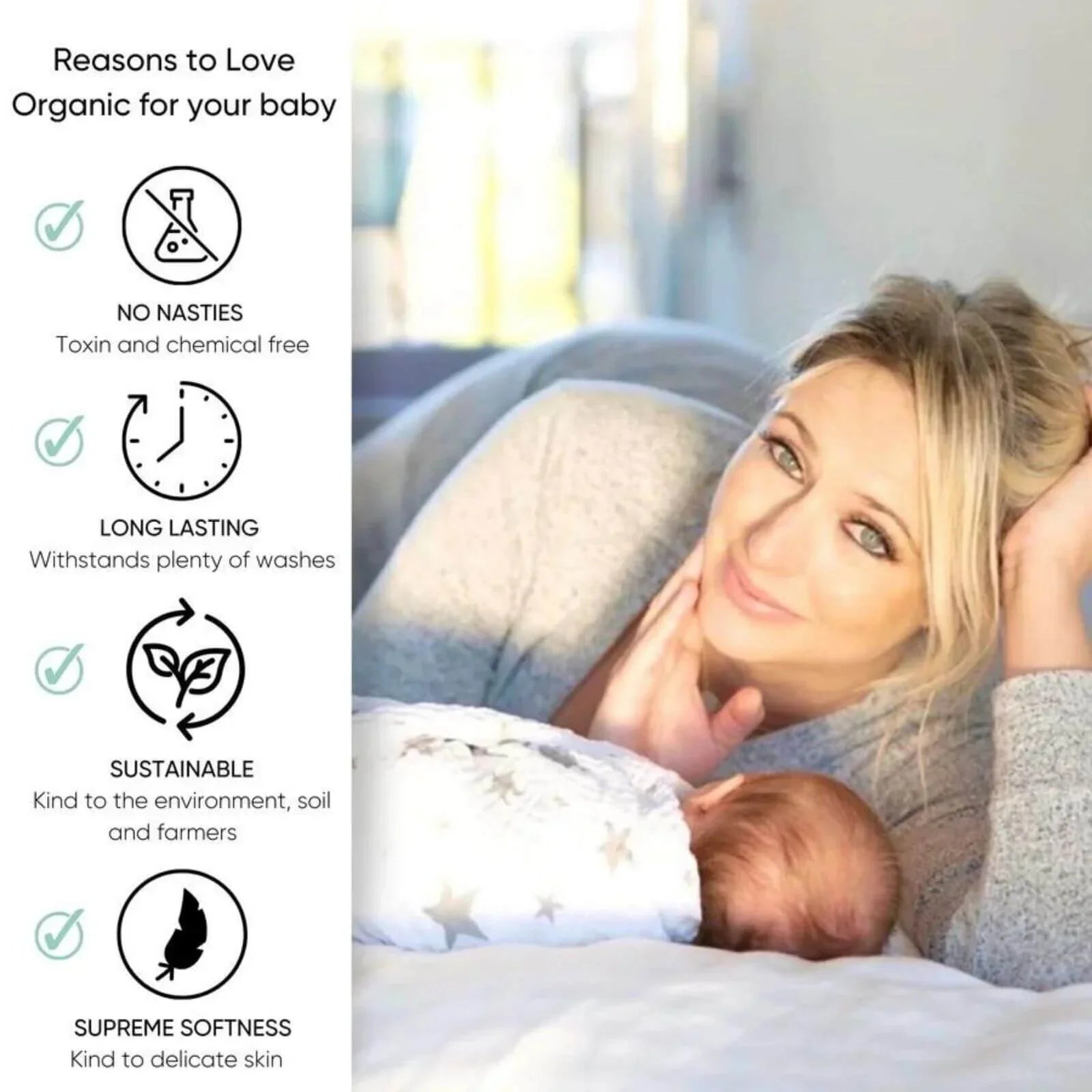 Size: 0-6 months (45 x 70 cm), 6-18 months (50 x 90 cm)