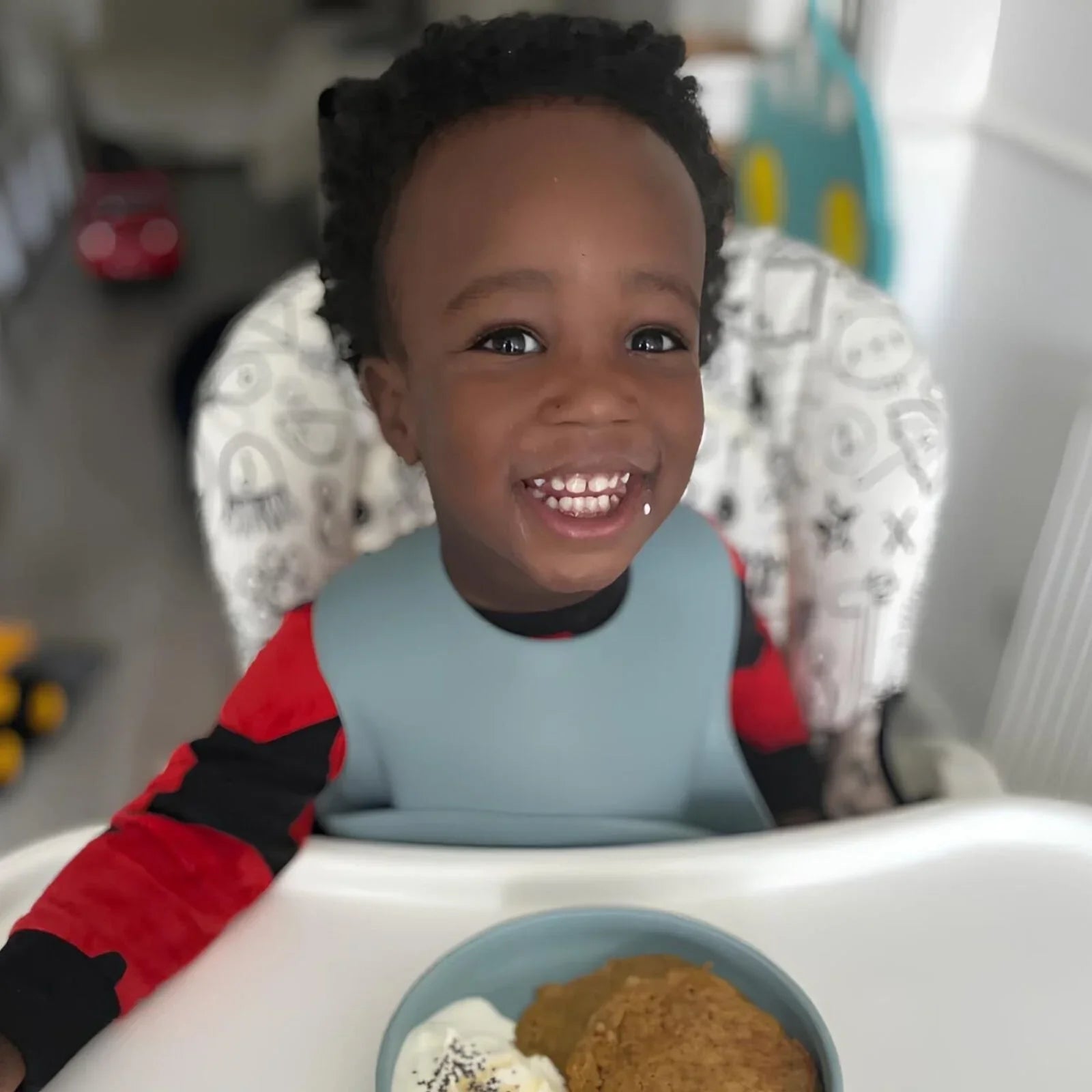 Our silicone bowl and plate features a suction base that sticks securely to the feeding surface, preventing spills and reducing mess. The bowls suction feature and easy scoop design makes it easy for young children to scoop food from the bowl without it sliding or tipping over, and the plates curved edges also allows for easy scooping and is proven to prevent spillages. The plate also features three compartments, reminding adults to serve a fruit or veggie, protein and carbohydrates.