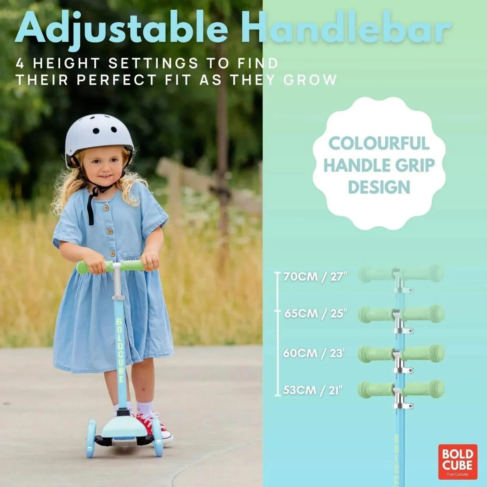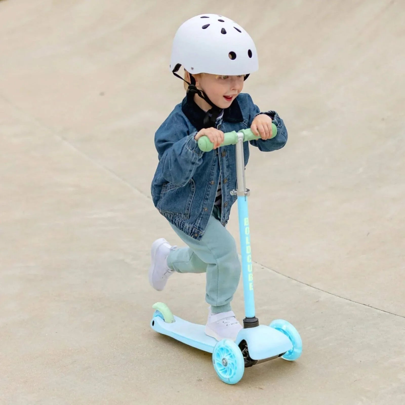 Our Teeny 3 Wheel Scooter was designed with early riders in mind, between 2-5 years old. It’s the ideal first scooter for any courageous toddler who wants to get to grips with scooting. It’s directed by lean to steer which means it’s the most intuitive way of movement for eager little ones to get scooting with speed quickly. The super lightweight (but sturdy!) frame means little kids kick off to scoot with ease, and carry their ride independently to wherever their next adventure may be!