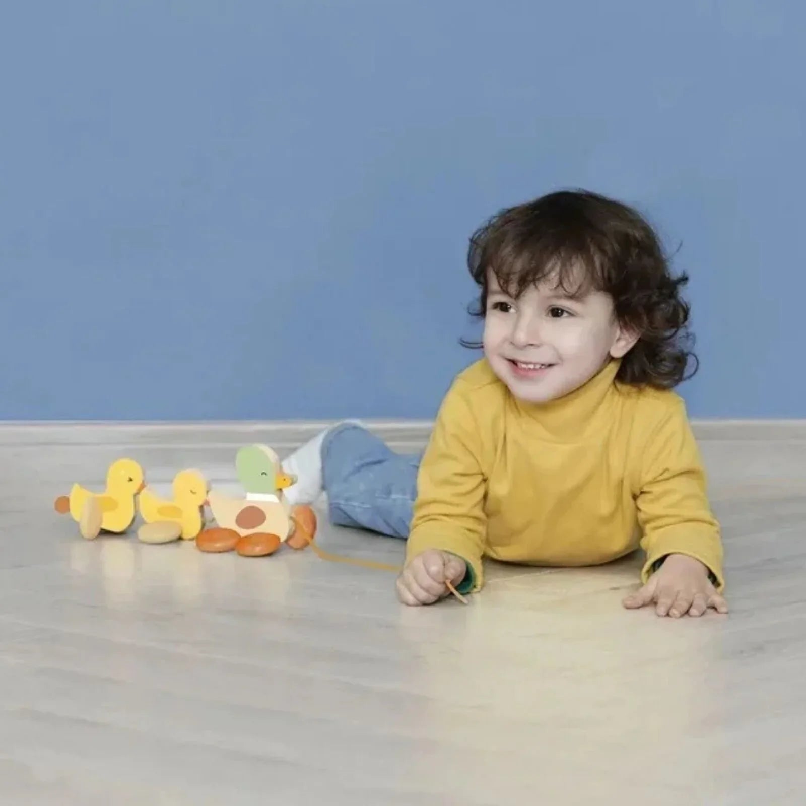 The Classic World Paddling Pull Along Duck is both fun and encouraging for little ones learning to walk! As they pull the mummy and baby ducks along, their wiggling motion captures attention, motivating toddlers to keep moving. This engaging design promotes gross motor skills, balance, and hand-eye coordination, making those first steps even more exciting. Crafted from natural, eco-friendly wood and coated with non-toxic, water-based paint, it ensures a safe and sustainable play experience. A delightful walking companion that makes every step more fun!