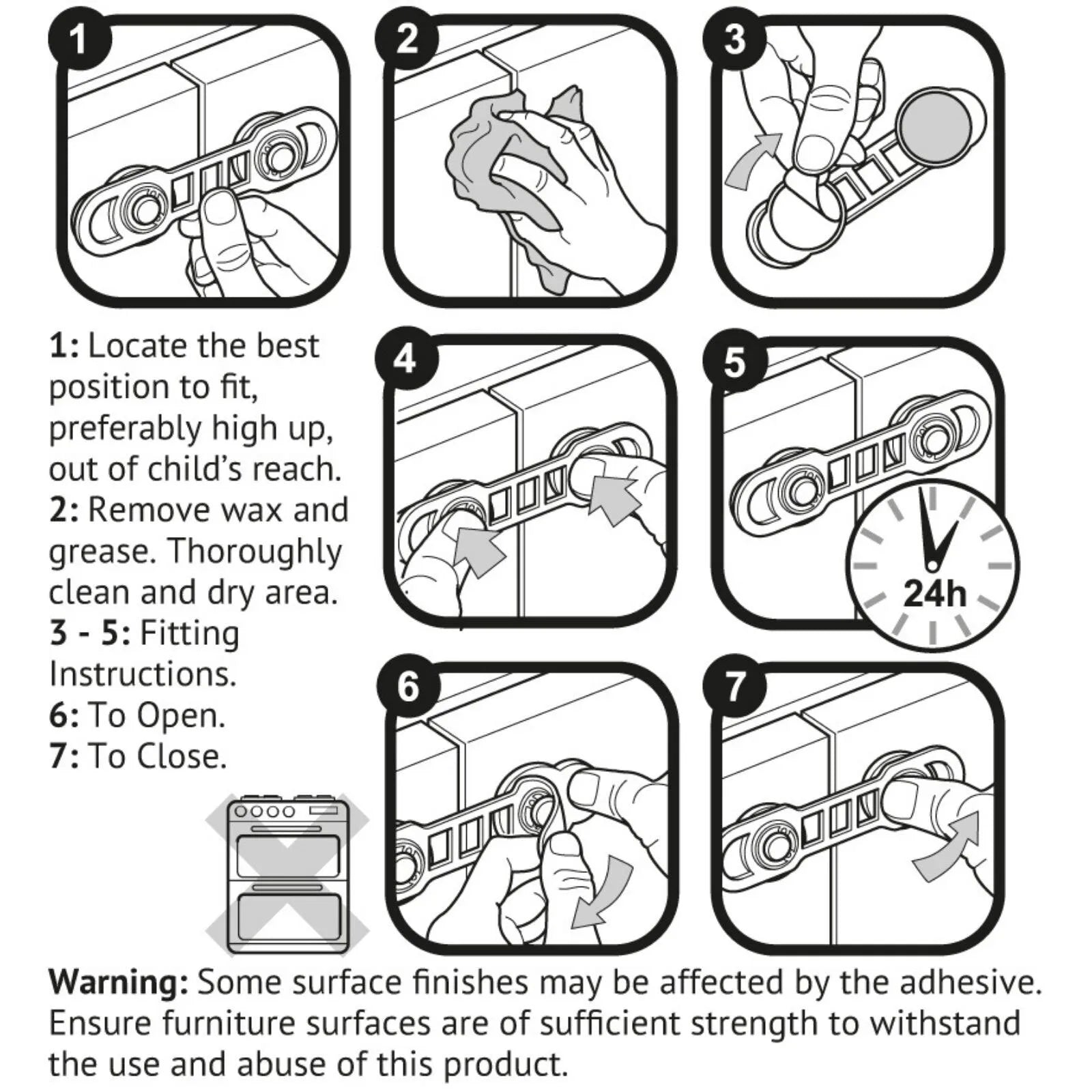 - These latches will make sure those things stay safely out of sight and well away from the hands of your little ones and their friends. They come in a pack of two, and are fitted with adhesive pads so there’s no problem if you can’t, don’t want to, or aren’t allowed to screw into the furniture!