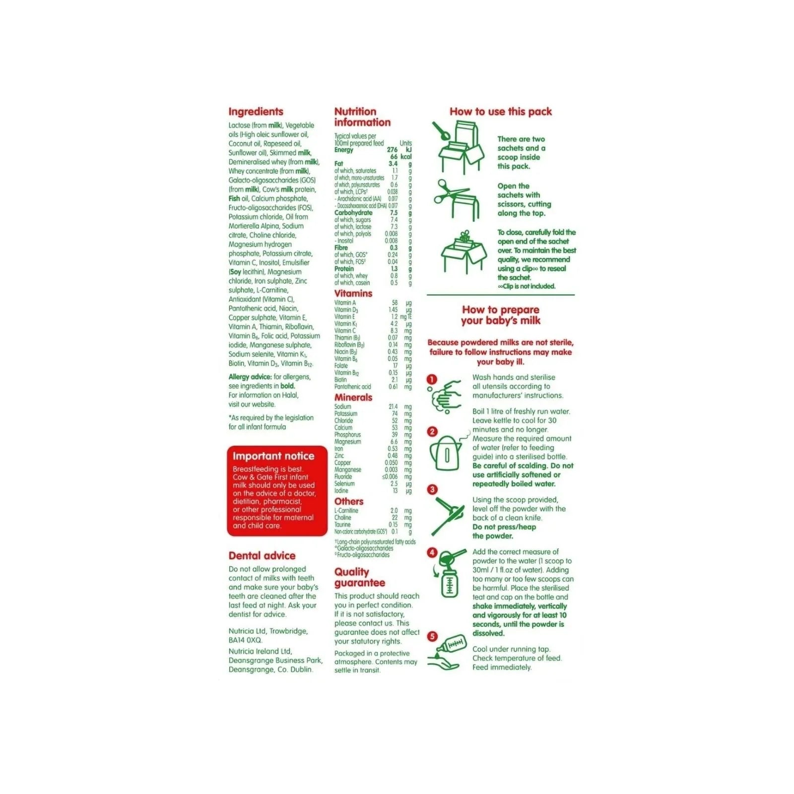 Nurture your precious one from day one with Cow & Gate First Infant Milk , a century-trusted breastmilk substitute packed with DHA and palm oil-free goodness. This convenient Cow and Gate 1.2kg Big Pack supports both bottle and breastfed babies, growing alongside them to Follow-On Milk at 6 months. Embrace confident parenting with our expert baby club and helpline, knowing breastfeeding is best, while choosing reliable nourishment when needed.