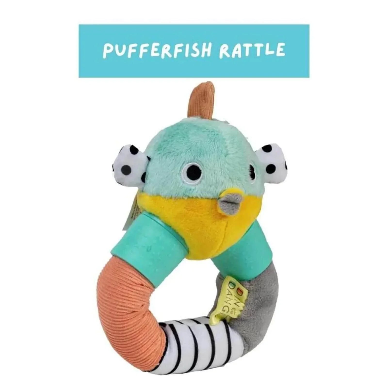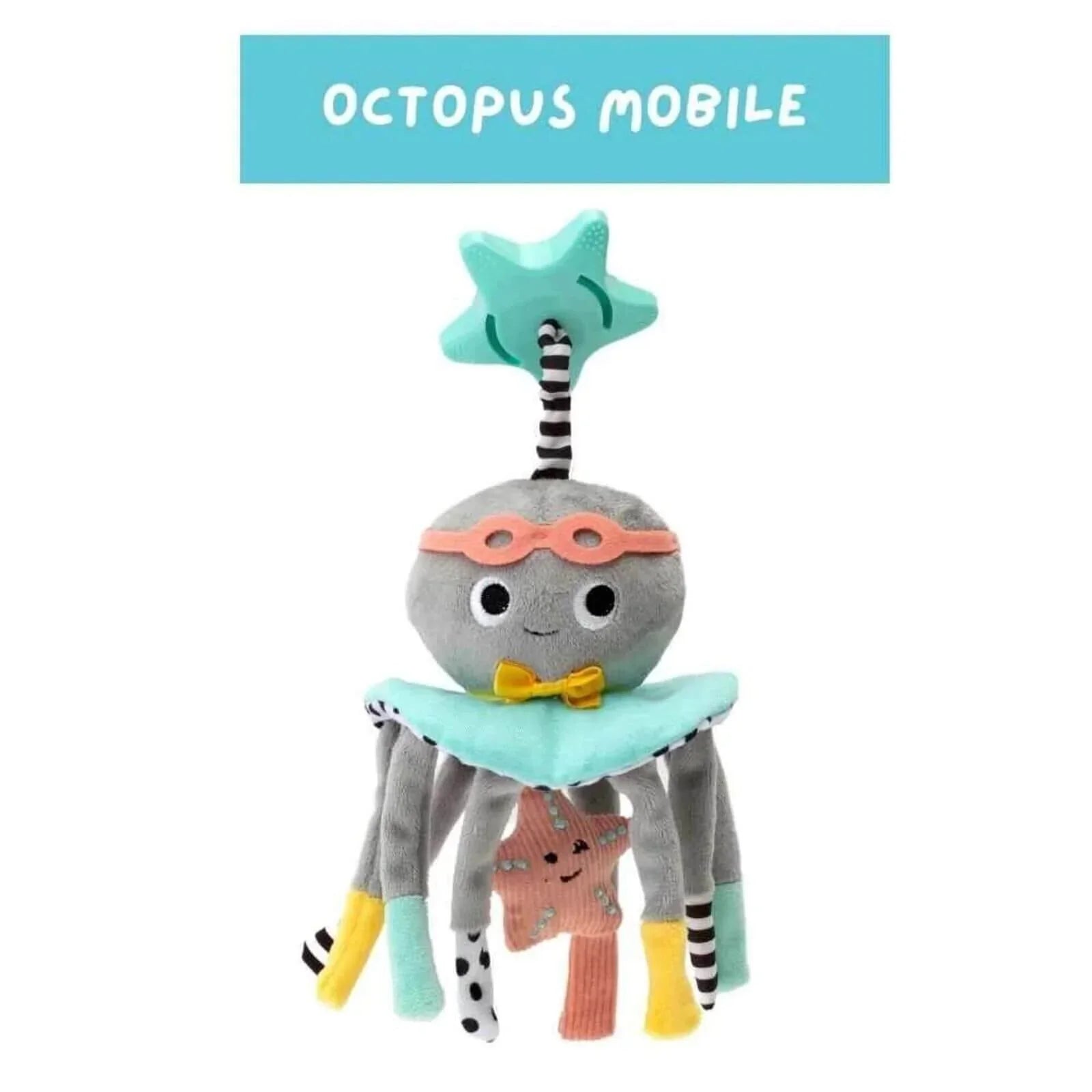Includes: Sensory Rod, Portable Octopus Mobile Attachment, Pufferfish Rattle Attachment, Headband, Attachment Claw for your crib, cot, stroller, or pushchair; and 100% Cotton Carrying Bag.<