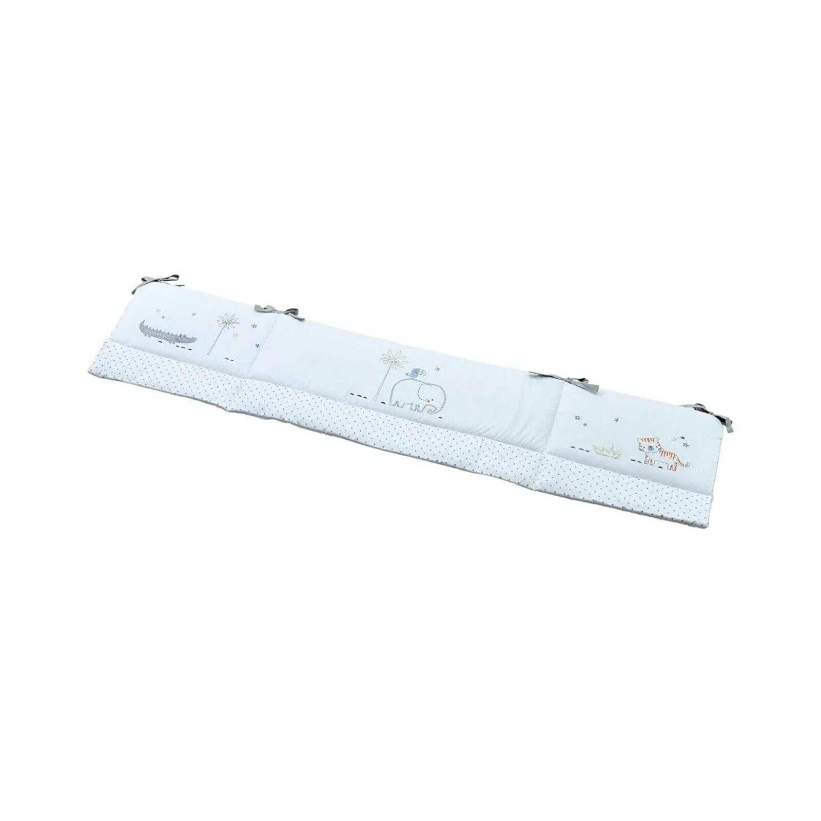 - Coverlet: 100 x 120cm, Bumper: 30 x 140cm, Fitted Sheet: 140 x 70cm.