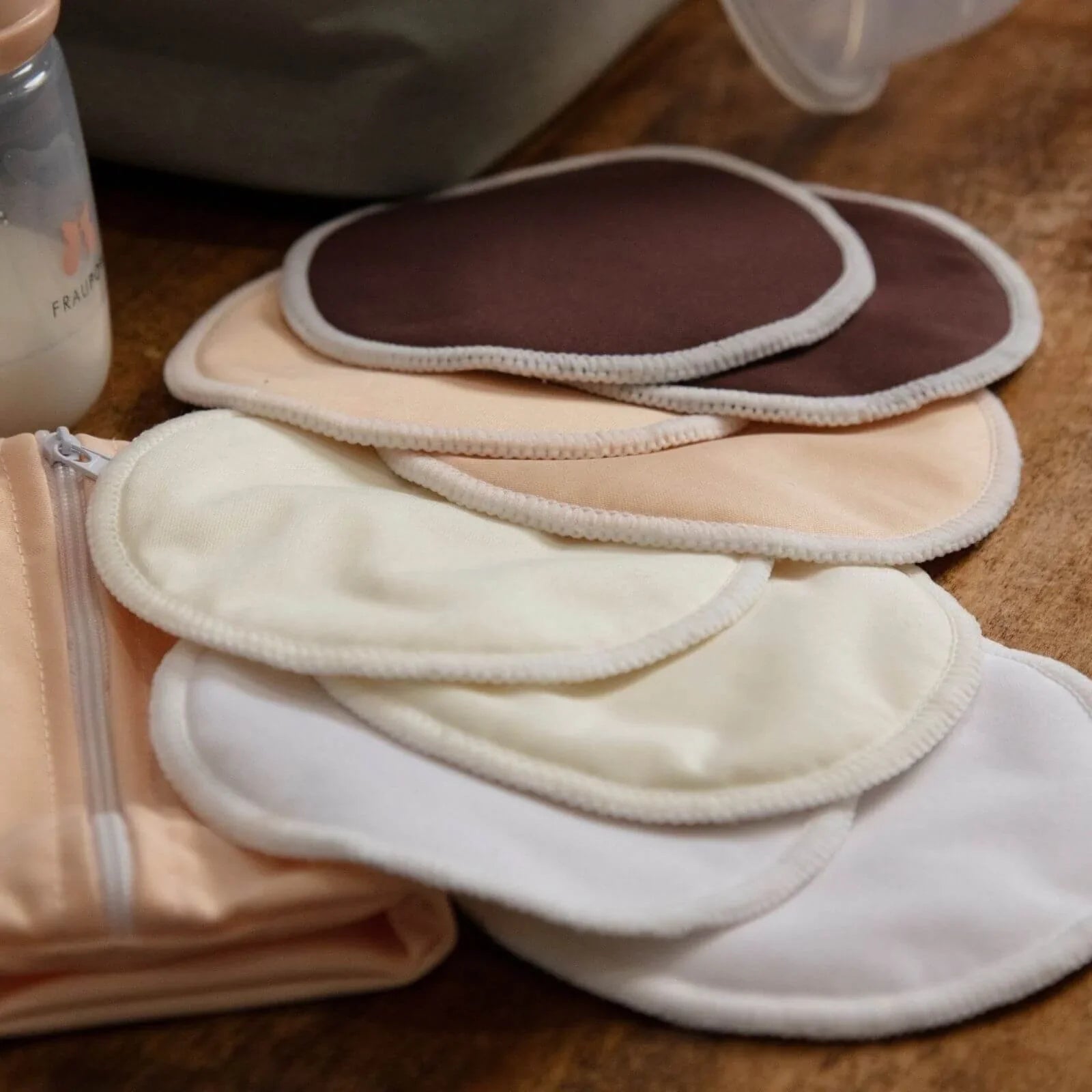 Our reusable breast pads are made of three layers, including a super soft natural fibre layer against your skin and a waterproof outer layer to prevent any wet patches.