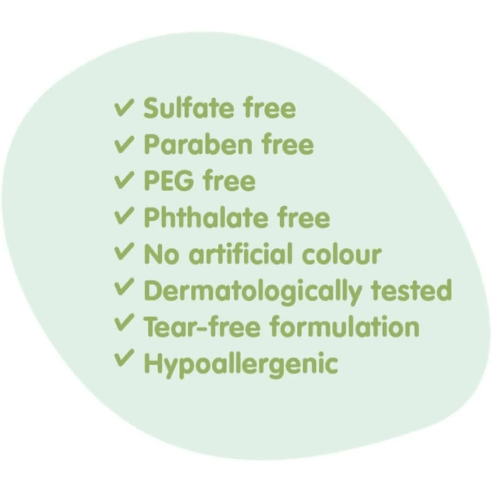 Dermatologically and ophthalmologist tested, this award-winning formula is perfect for sensitive skin and tear-free for a stress-free bath time. With at least 98% naturally-derived ingredients, it’s free from sulphates, parabens, silicone, PEG, phthalates, and artificial colours.