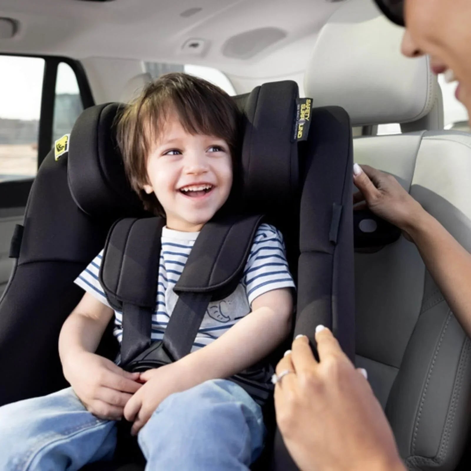 This seat is extended rearward facing from 40cm (Approx Birth) up to 105 cm (approx. 4 years). With added support for your child’s head and neck, this car seat offers secure protection for your child as you travel. Adjustable 6-position headrest allows this seat to grow with your child, the headrest and harness adjust simultaneously meaning no need for you to rethread the harness. The headrest must be adjusted so that the shoulder harness is at the same level as the child’s shoulders. This seat also includes 5 recline positions to ensure maximum comfort. 360º rotation allows you to easily take your child in and out of the seat. TrueShield side impact protection pod ensure comfort and protection, from birth to 4 years old.