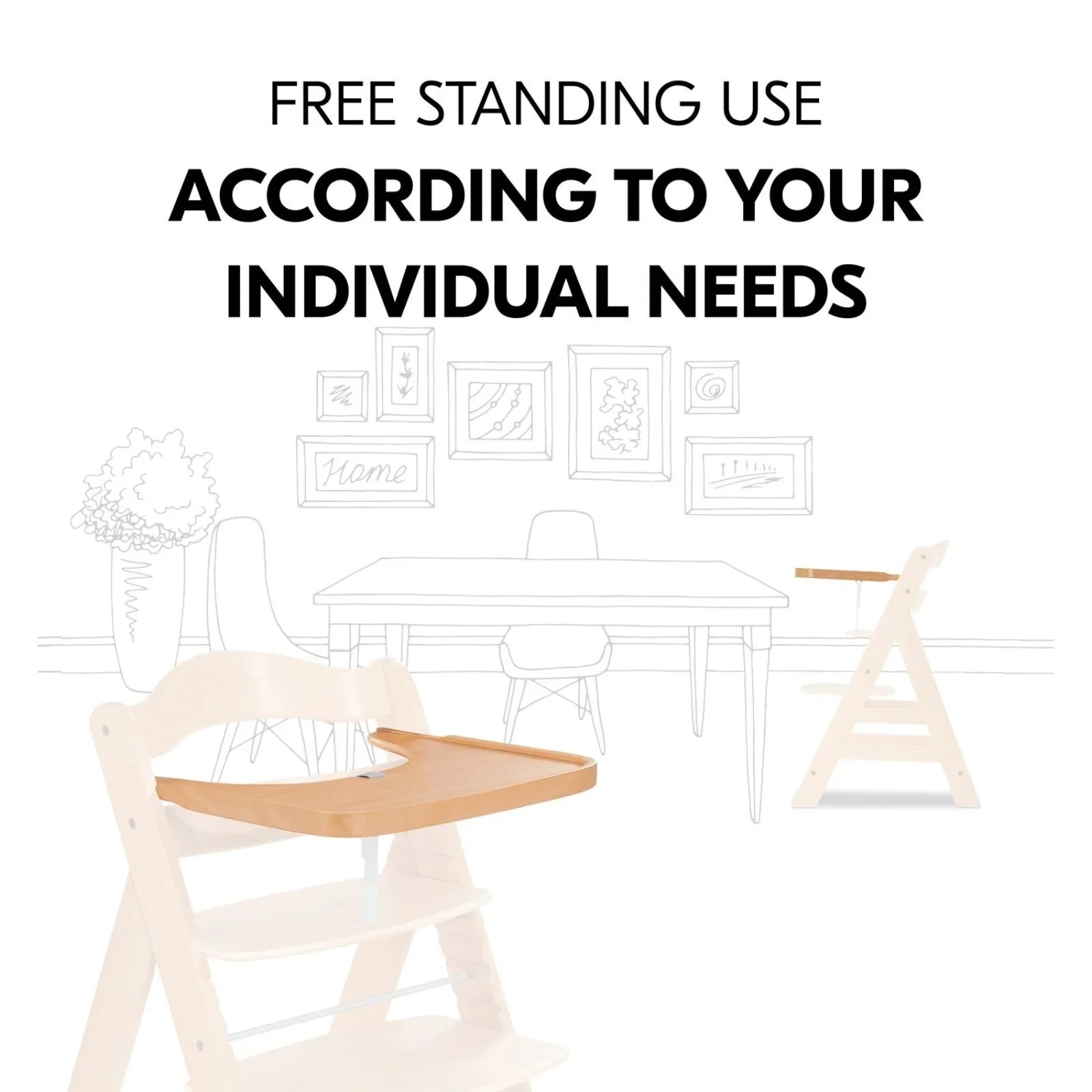 HIGHCHAIR TRAY FOR HAUCK WOODEN HIGH CHAIRS: The dining and play board is fixed in seconds to the growing Alpha+ or Beta+ children's high chair, which can now be used free-standing anywhere.