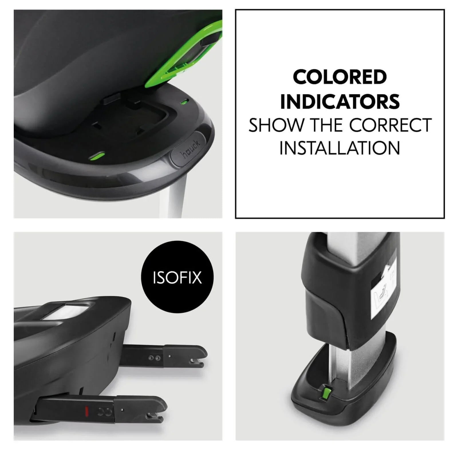 You can install the car seat on the included Isofix base, which is fixated by means of the Isofix anchors. The green/red indicators allow you to check whether its correctly installed.