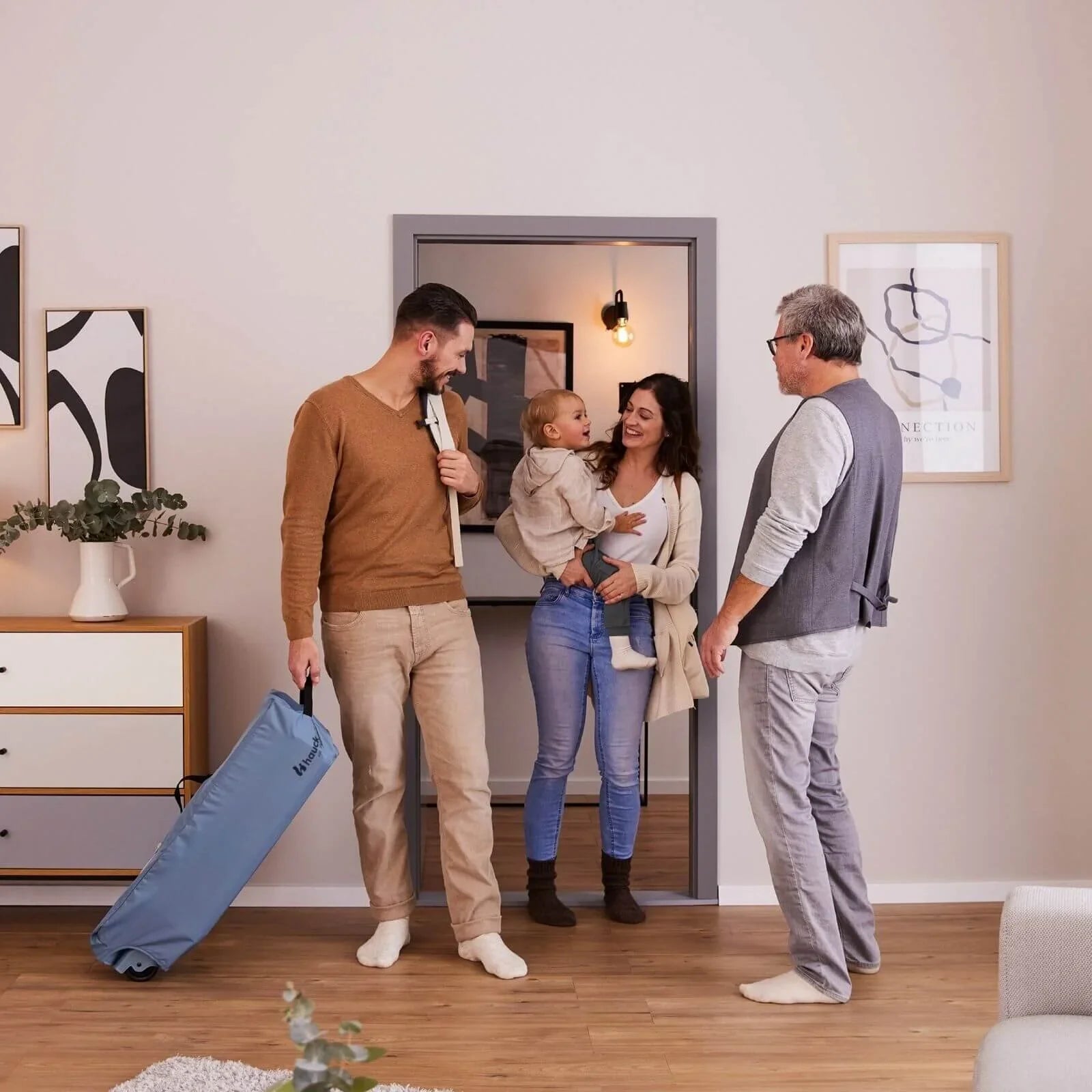 Do you want a travel cot that is quick to assemble? The Sleep N Play Go Plus's special mechanism makes things easy for you. You can easily set it up and fold it away again. You can slide the Sleep N Play Go Plus from one room to another or pull it along behind you when folded. And the accompanying transport bag provides space-saving storage.
