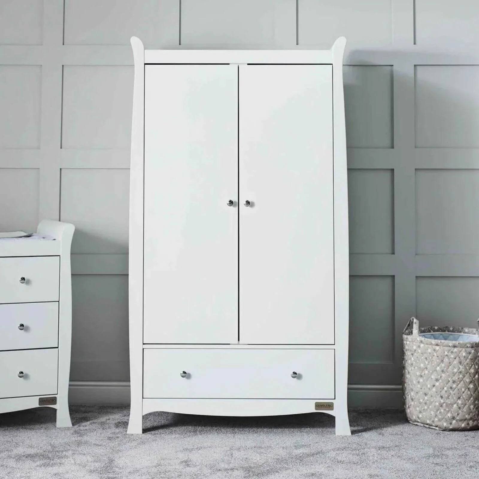 The Wardrobe is a beautiful addition to your nursery that compliments the other items in the Snowdon range. Including a full-sized interior that means you don’t need to compromise on storage. It also includes two hanging rails and a lower drawer, offering lots of space for all of little one’s outfits. Large doors are supported by soft close hinges to gently close with minimal noise, ideal for a nursery.