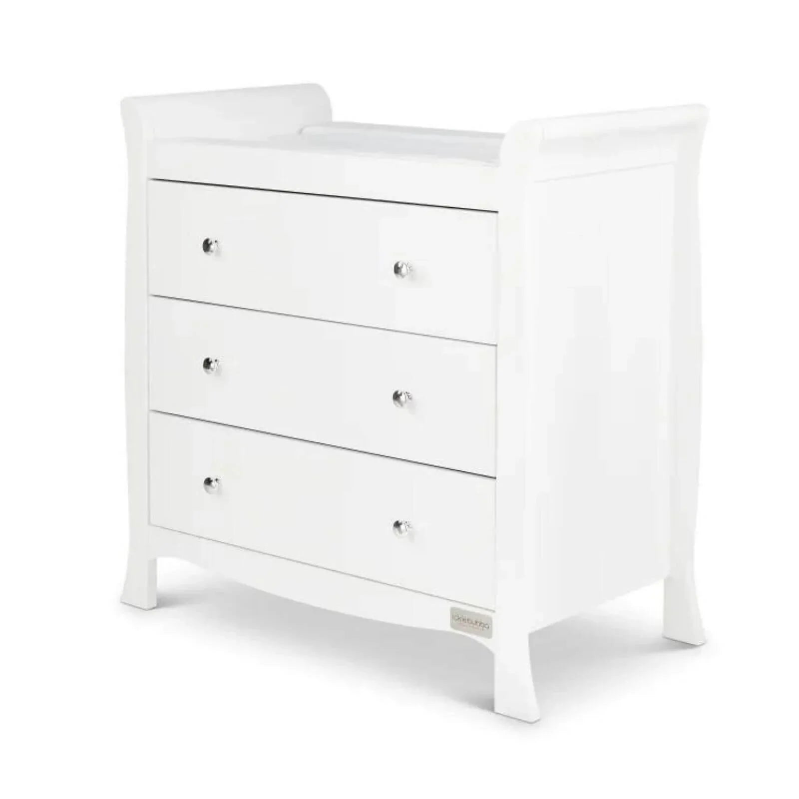 The Snowdon Changing Unit has a distinctive and traditional sleigh design including three drawers with elegant handles.
