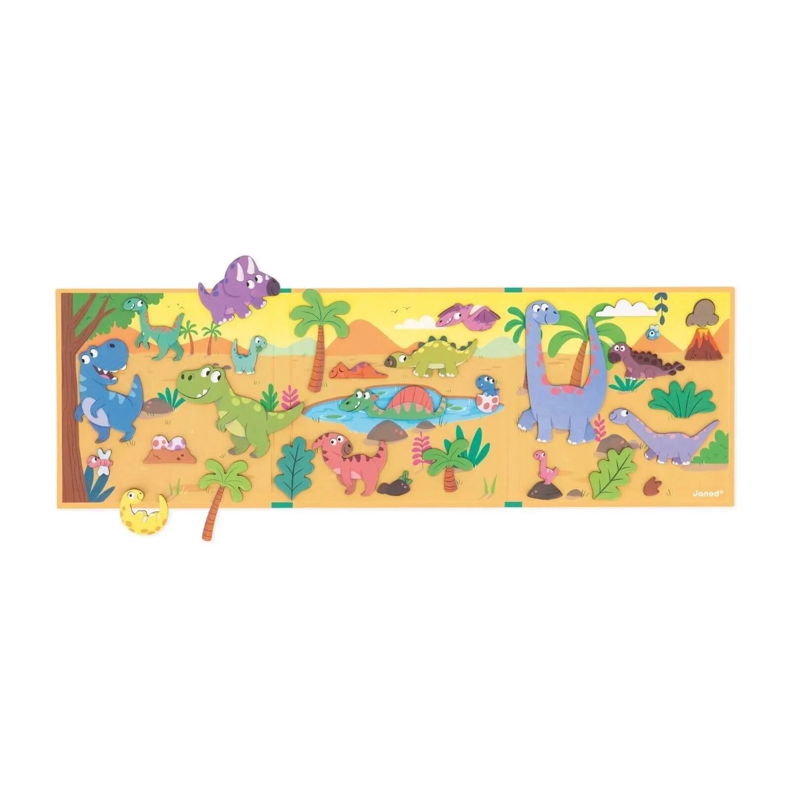 "ROOAARR", Jurassic animals are within easy reach! This magnetic backdrop opens the doors to a distant dinosaur-populated era for children aged 3 years and up.