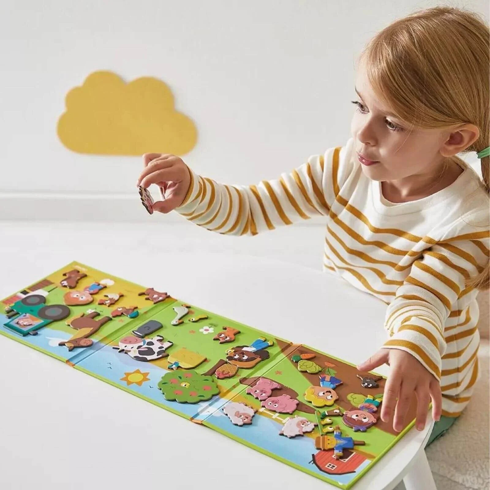 Come take a better look! Night has just fallen in the forest and a big surprise is in the making. This magnetic game will amaze children aged 3 years and up. The illustrated backdrop will help bolster your little one's imagination and fine motor skills.