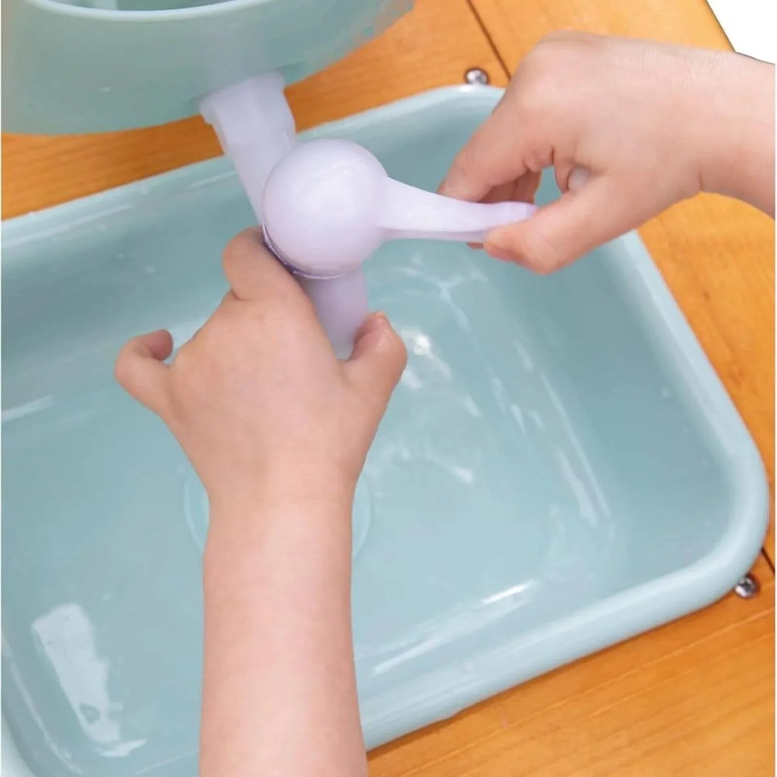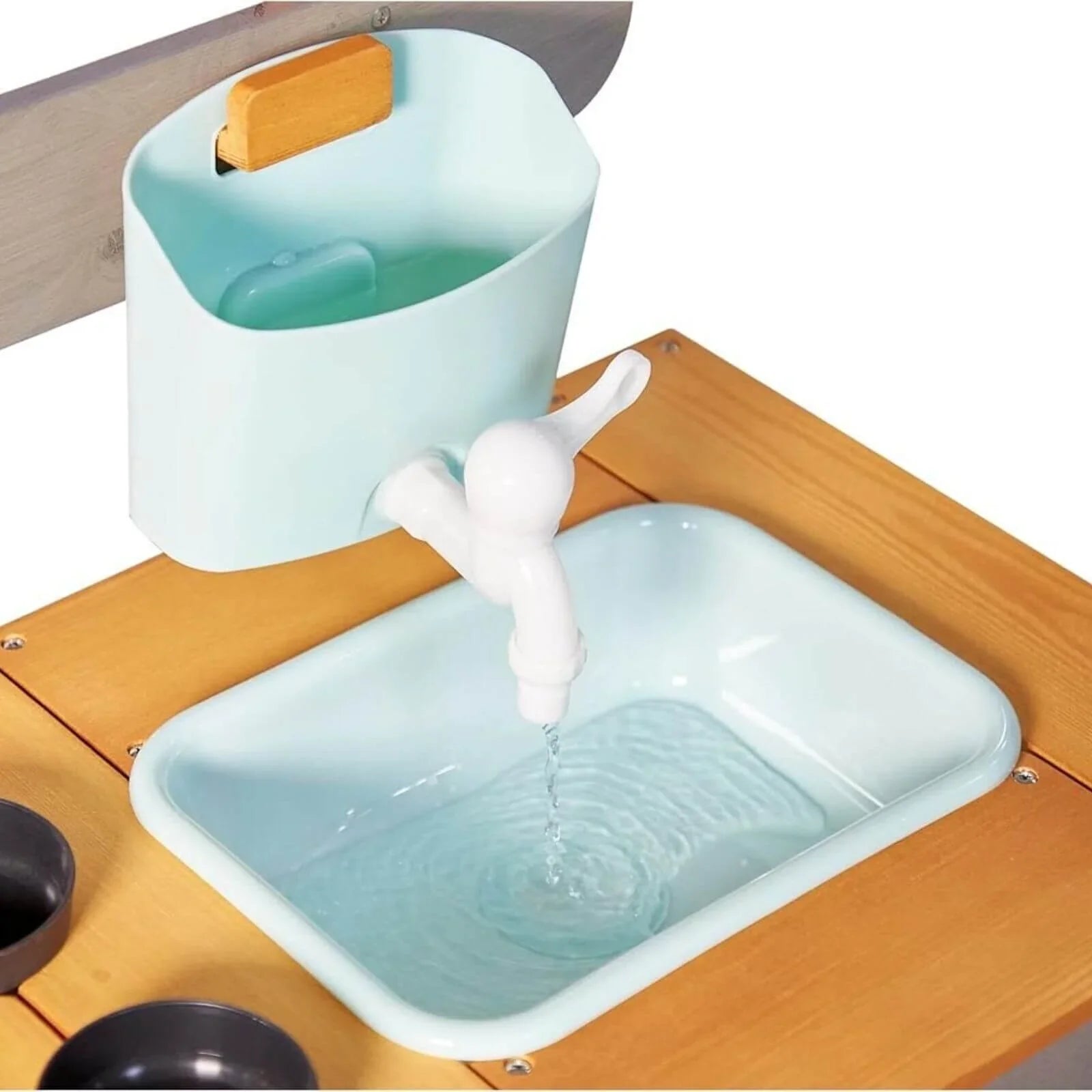 Once the ideal location has been found in the garden or on a terrace, little ones will simply have to put their imagination into gear to enjoy the richness of nature and everything that surrounds us! A little soil, a few blades of grass, water, pretty flowers... mix, experiment, observe and learn whilst having fun! And why not plant your own pots on this outdoor workbench or potting table? You can imagine anything with this pine pretend toy that has been specially treated for outdoor use. This actual laboratory for nature discoveries is perfectly equipped to satisfy all garden adventurers, thanks to its 2 sinks and 2 small removable plastic pots which will allow little ones to go in search of ingredients for secret potions! A real tap makes cleaning easy: simply fill the tub and then open the tap from right to left to let the water flow! A metal sieve and a paintbrush are also provided to facilitate your little explorer’s research.
