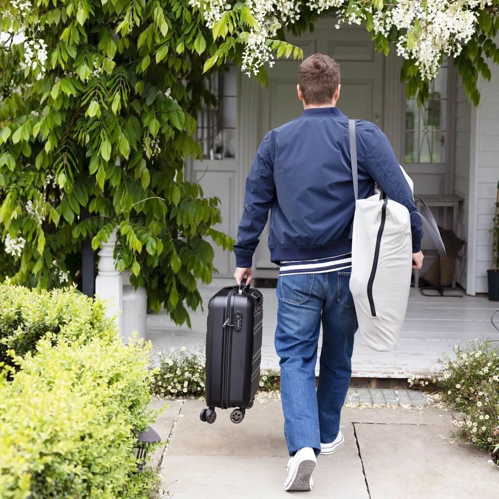 The Roomie Go quickly folds down into one tiny package – no struggling or disassembling involved. It's compact and lightweight so you can easily carry it along as you travel or tuck it away into small boots and cupboards. Plus, the sliding side panel lifts and lowers with just one hand, helping you answer those midnight wake-up calls.