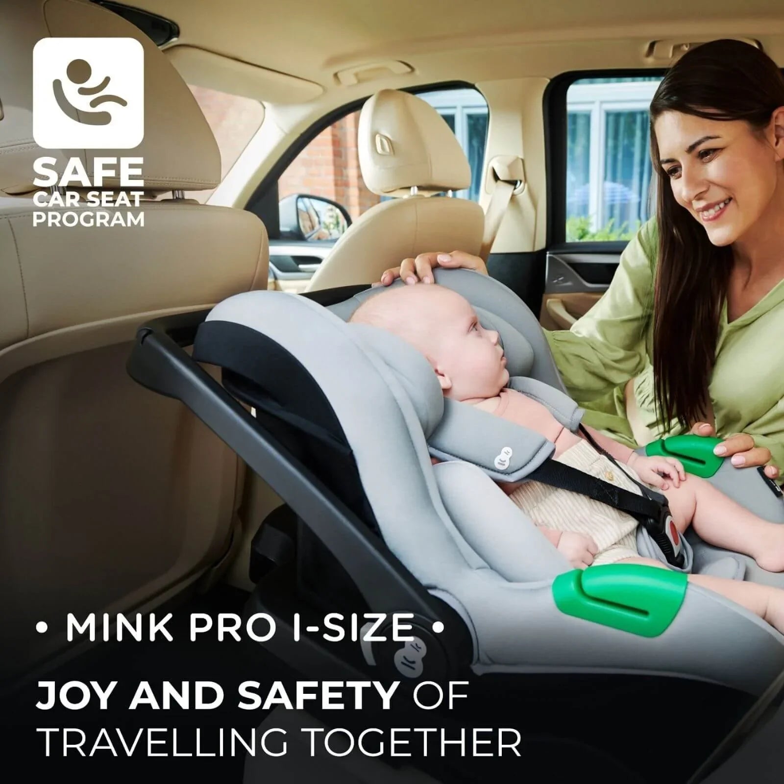 Accessories: foot moof, rain cover, car seat MINK PRO i-Size (40-75 cm), and adapters