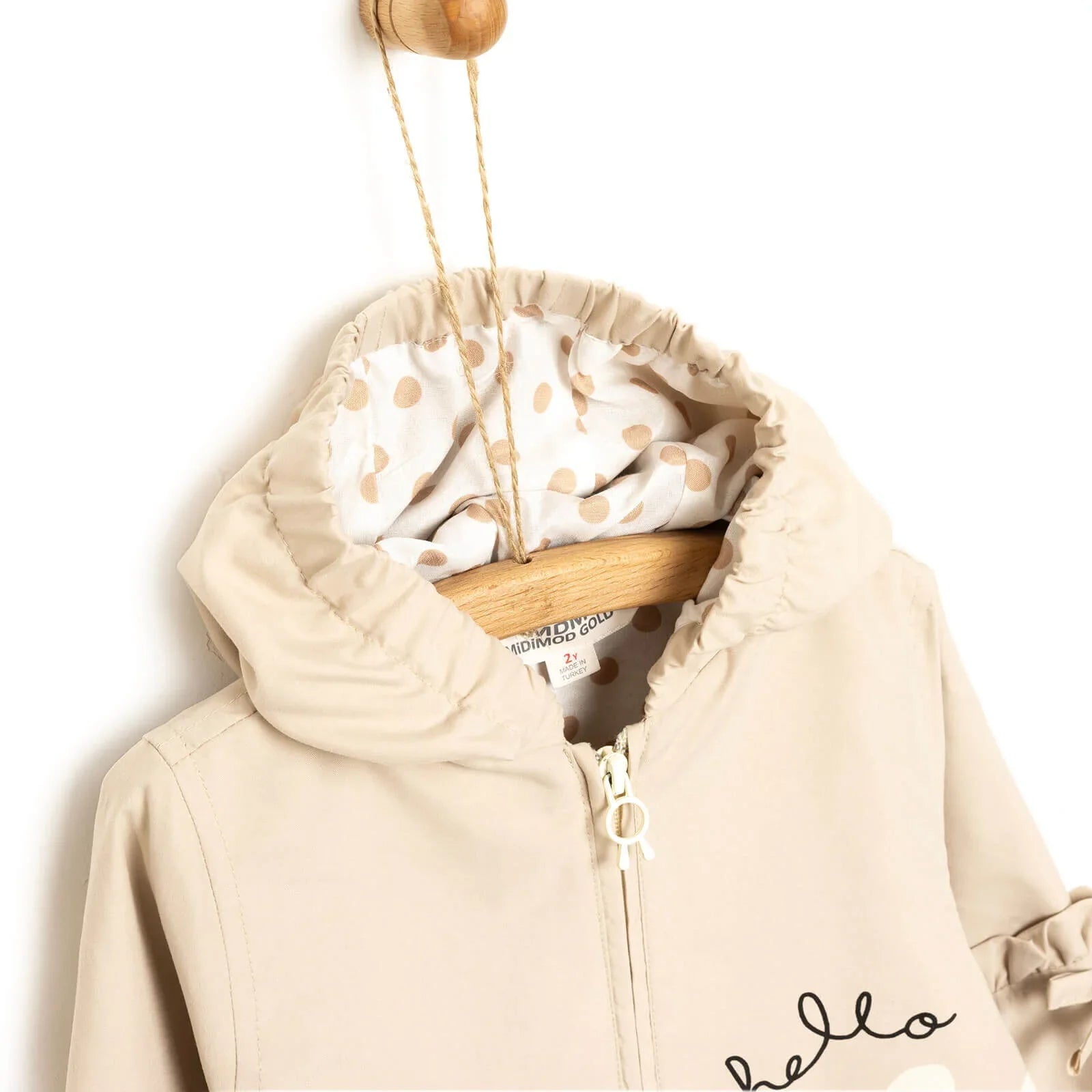 The fabric of our baby rain jacket features a robust 100% polyester outer layer, designed to keep your little one dry while offering excellent durability. The lining combines 65% cotton for softness and breathability with 35% polyester for added strength and quick-drying properties. This blend ensures your baby stays comfortable and cosy, making it perfect for spring and summer outings. The combination of materials not only protects against the elements but also feels gentle against delicate skin.