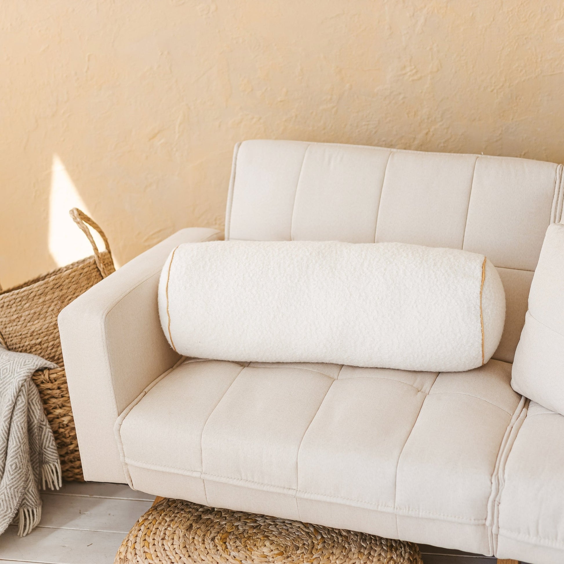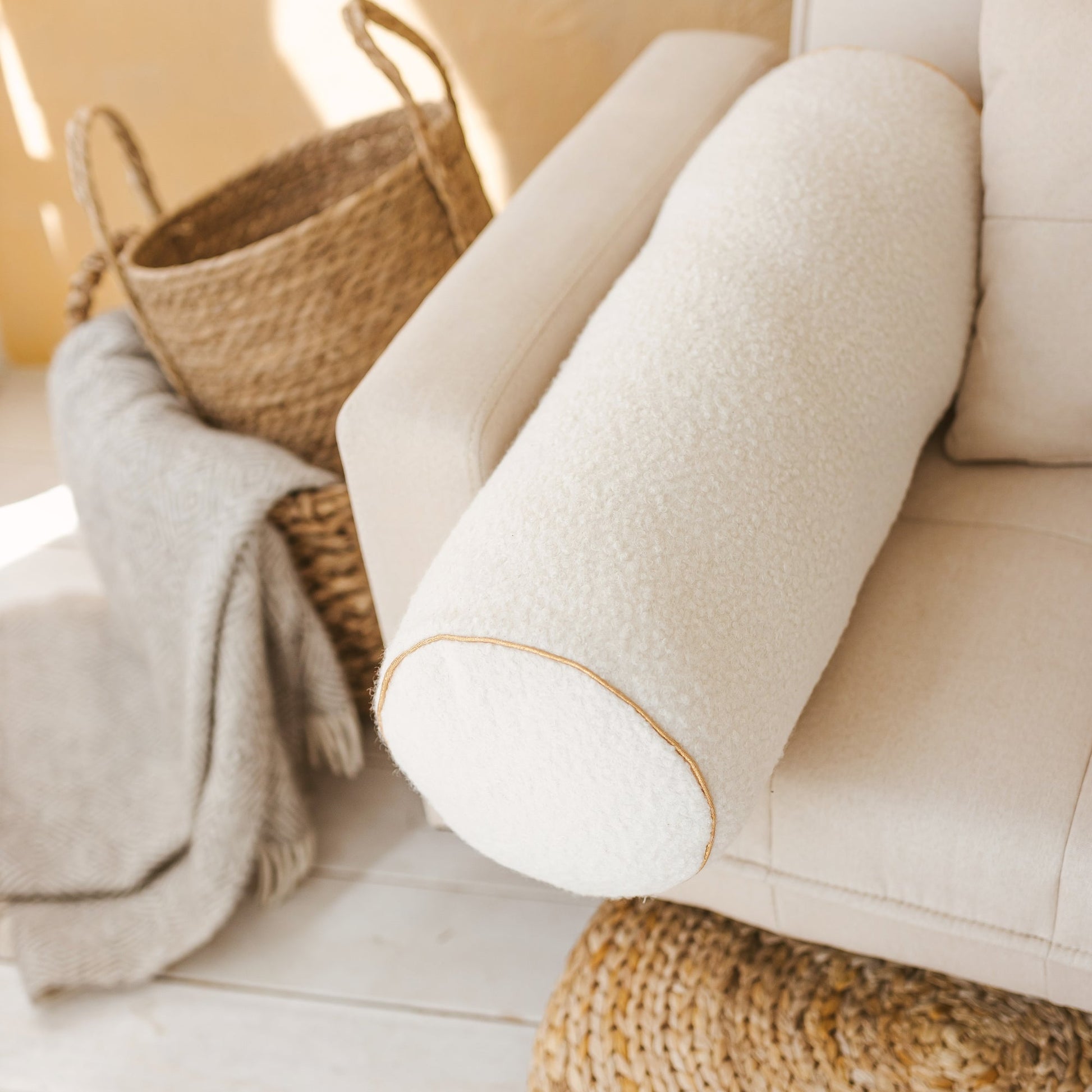 MINICAMP Ecru Boucle Bolster Pillow with Gold Trim
