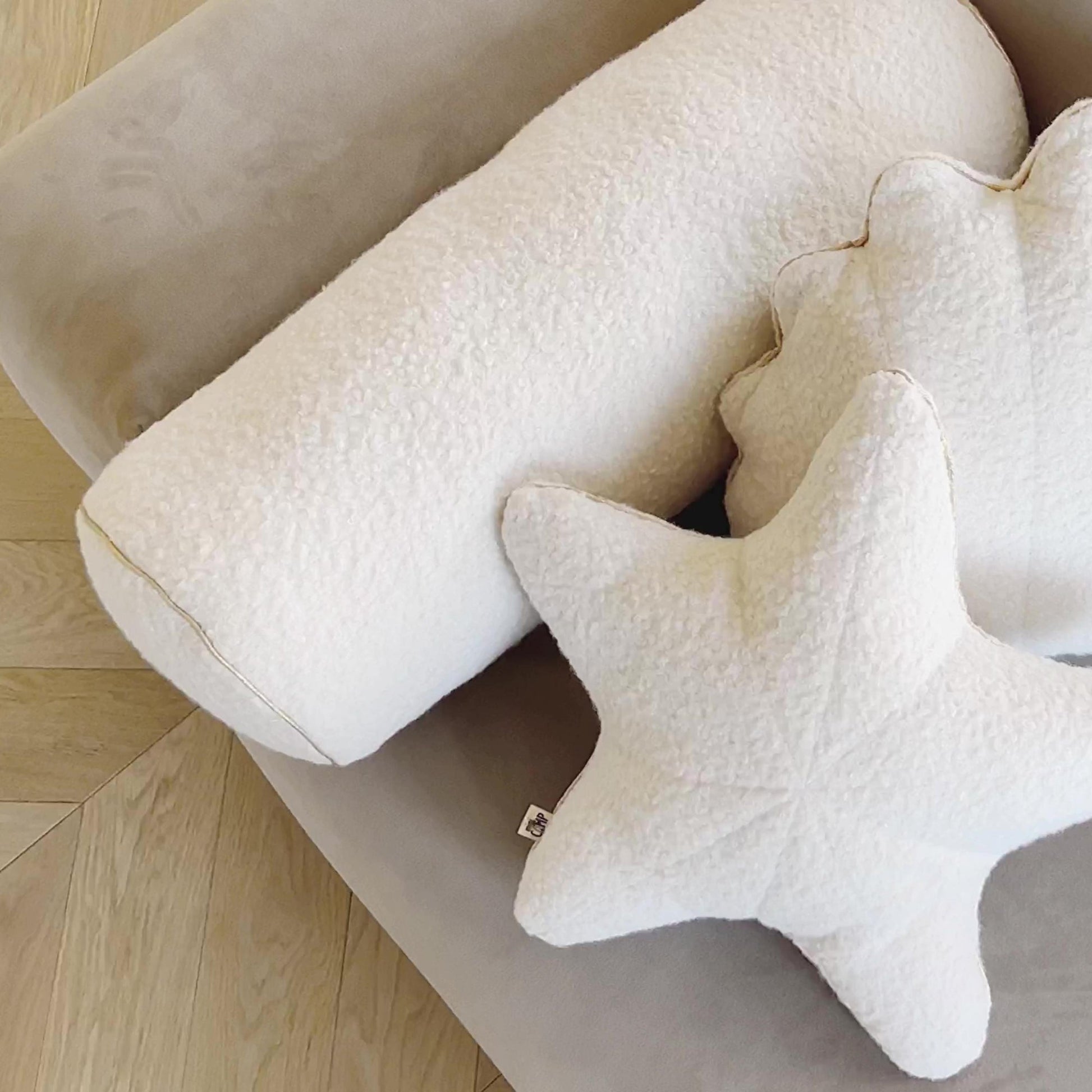 Bring elegance and comfort to your home with our ecru boucle bolster pillow. Made from soft, chunky boucle fabric with a shimmering gold trim, it adds a stylish touch to any space. Measuring 70x23 cm (27x9 inches), it’s perfect for larger sofas or as a supportive back cushion. With a hypoallergenic filling and durable design, this pillow is both cozy and long-lasting—great for layering on your sofa or bed.