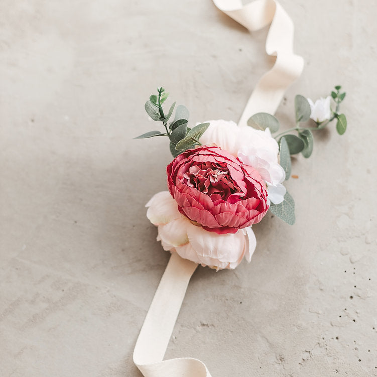 This cute boho-style floral garland is made from artificial peonies and eucalyptus leaves, perfect for decorating a teepee, nursery, or even for weddings. Its soft mute colors make it a lovely addition to any space.
