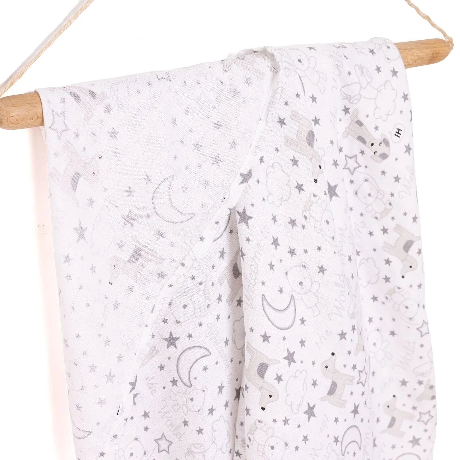 This soft baby blanket gently wraps arounddelicate skin. Its lightweight design makes it perfect for use both at home and on the go.