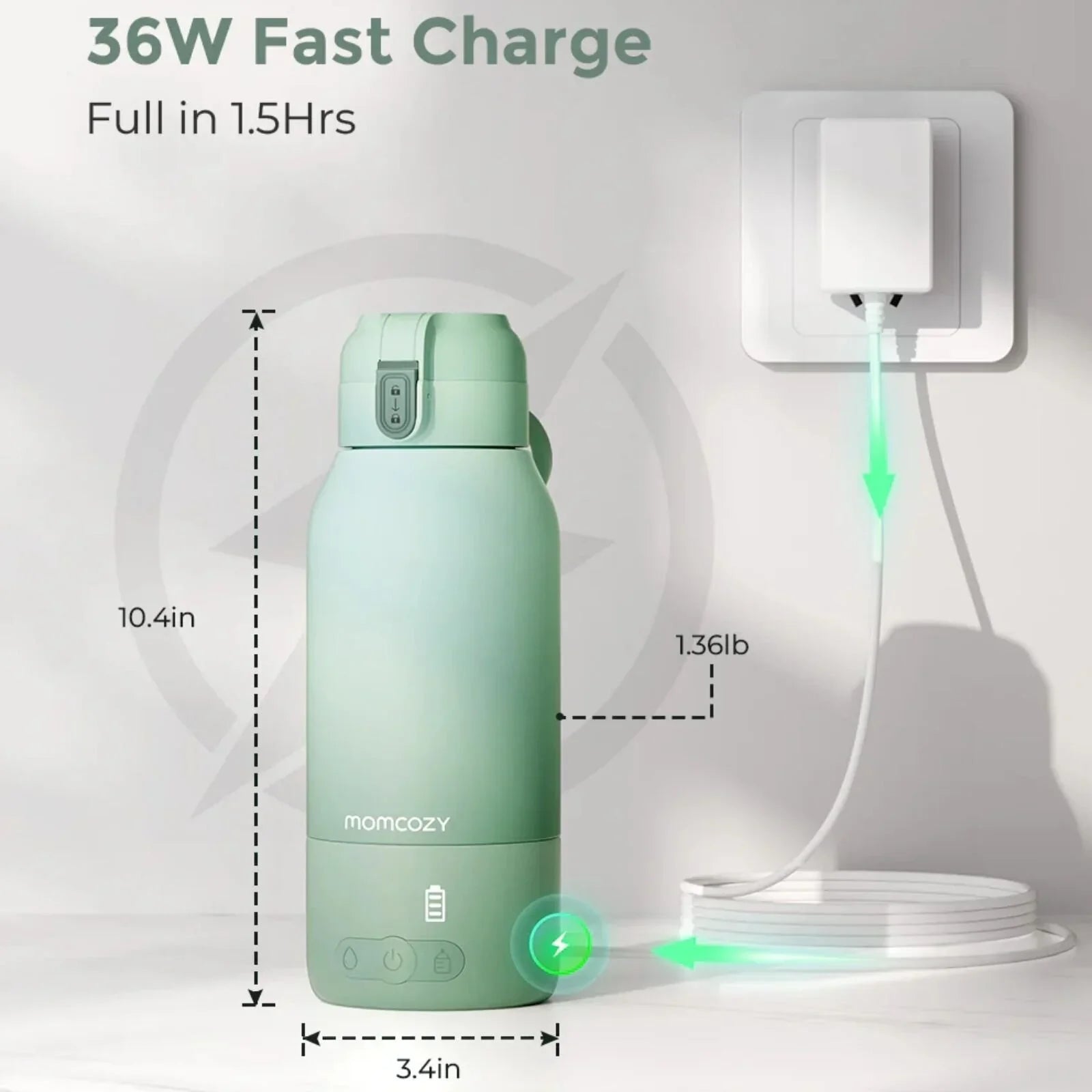 Momcozy Portable Milk Warmer is a wireless, fast and travel-friendly solution designed to prepare your baby’s milk at the perfect temperature wherever you are. With dual heating modes, it gently warms breast milk or brings water to the ideal temperature for formula in just a few minutes. Its generous 500 ml capacity meets daily feeding needs with ease, while the long-lasting battery provides multiple warming cycles on a single charge, giving you total confidence during long days out. The leak-proof thermos design, lightweight body and 1.5-hour fast-charging make life noticeably easier for new parents. Whether at home, in the car, at the park or even during flights, it ensures you can prepare your baby’s milk effortlessly anytime, anywhere.