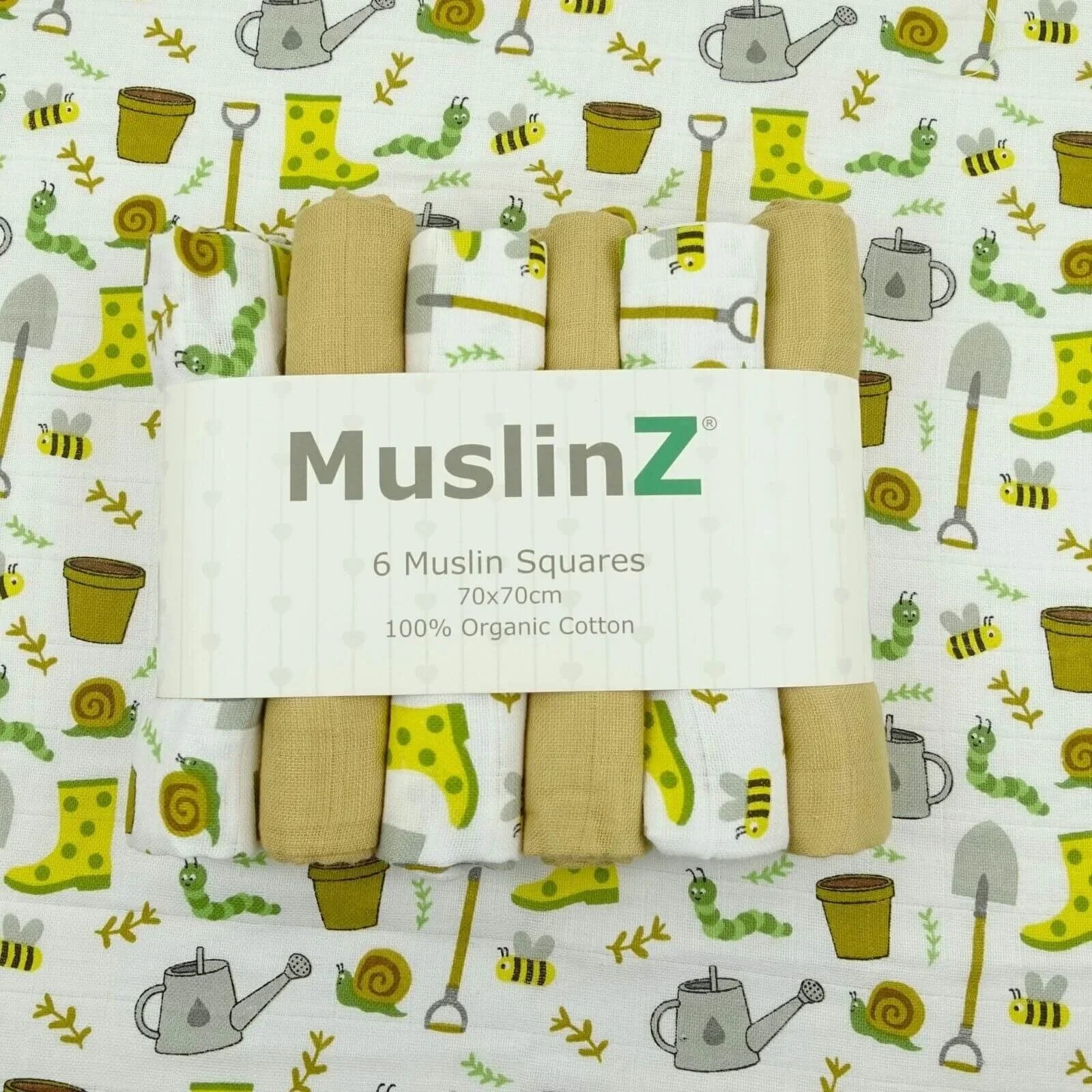 MuslinZ 6 Pack Organic Cotton Muslin Squares 70x70cm - Garden