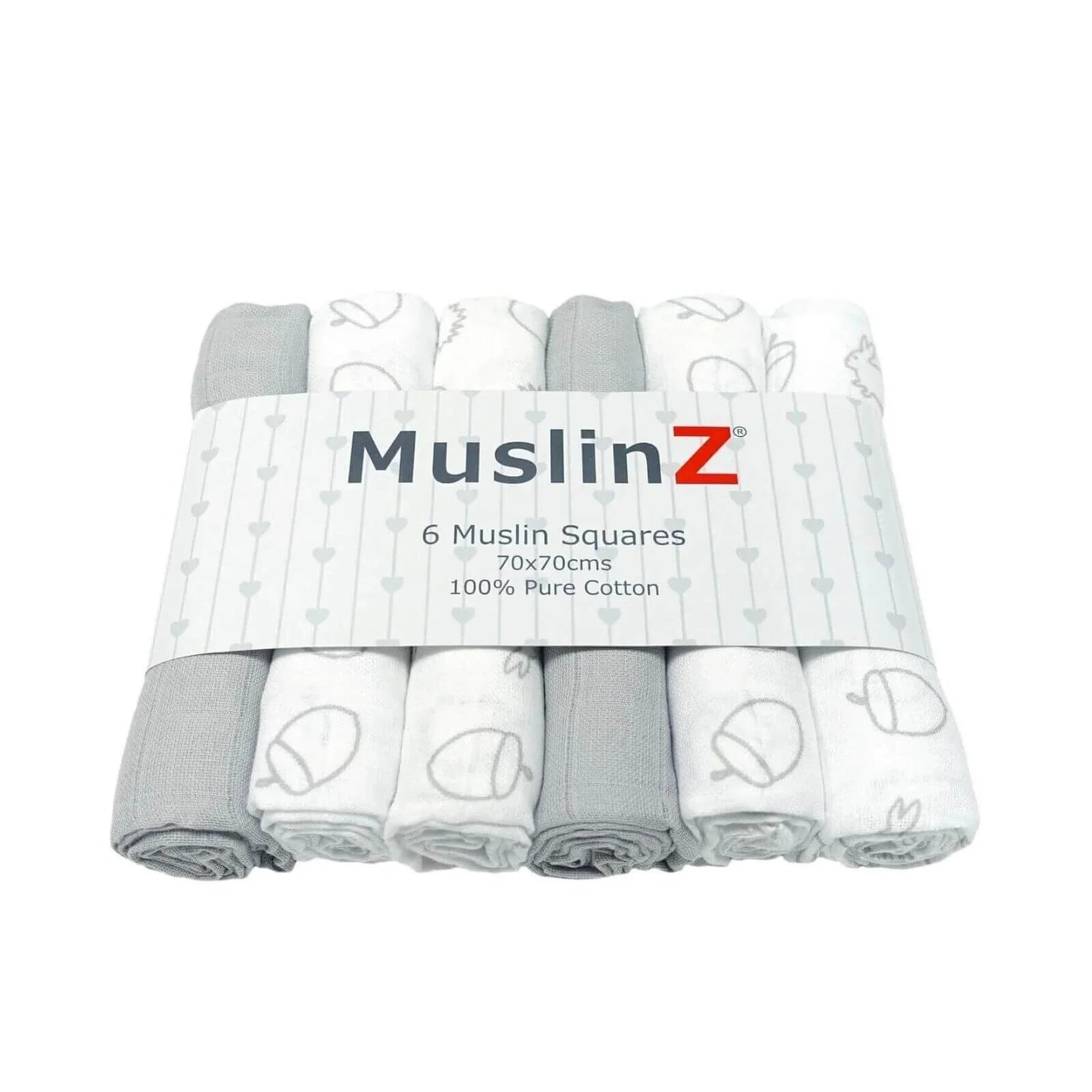 MuslinZ 6 Pack Muslin Squares 70x70cm (27.56"×27.56") are incredibly versatile and can be used for various purposes. They are commonly used as burp cloths, bibs, swaddle blankets, nursing covers, or even as makeshift nappies. Having a pack of muslin squares on hand provides you with a multi-purpose baby care essential. MuslinZ 6 Pack Muslin Squares 70x70cm are made from 100% cotton muslin fabric, which is known for its softness and gentleness against your baby's delicate skin. The fabric becomes even softer with each wash, ensuring a comfortable experience for your little one.