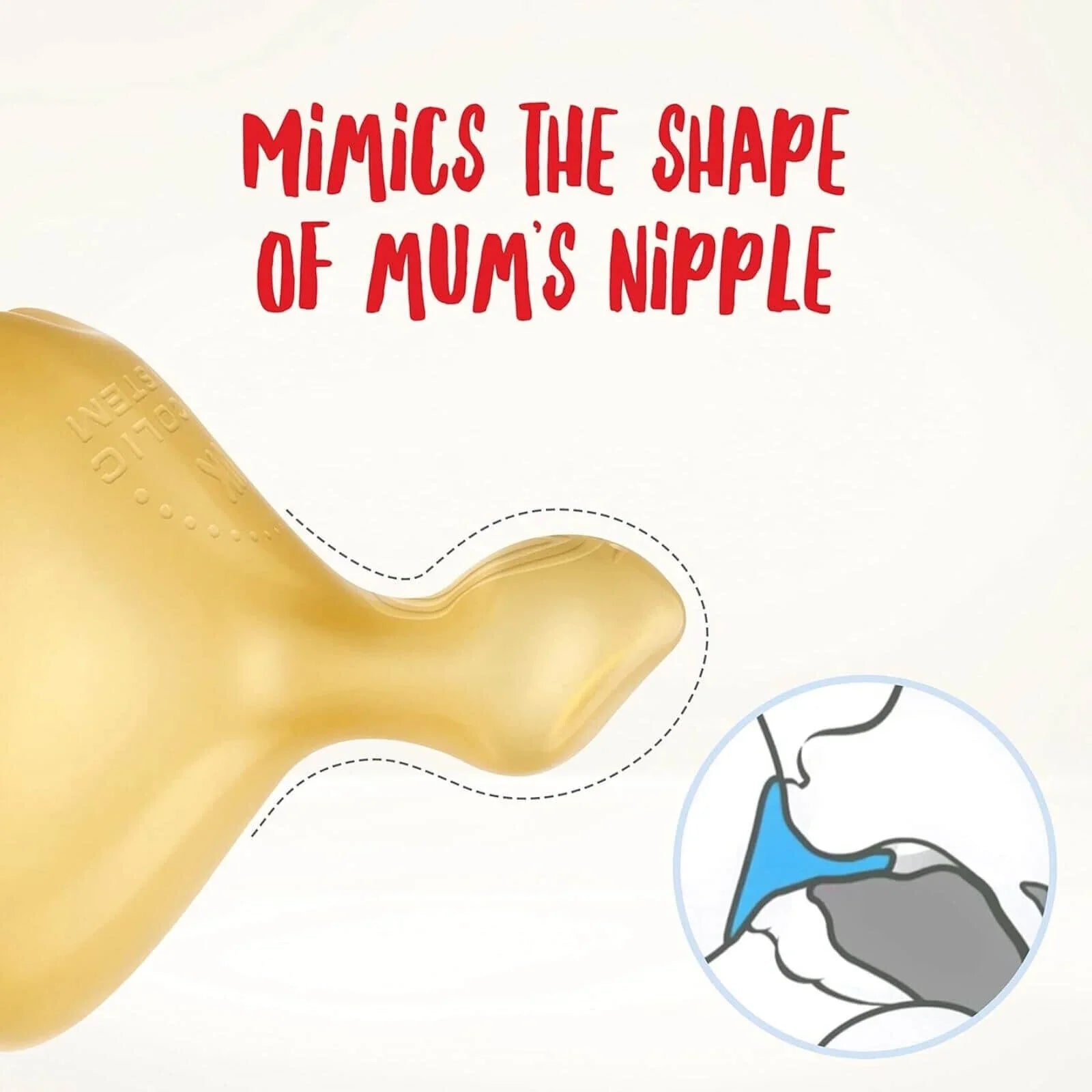 Modelled on the shape of a mother's nipple during breastfeeding, NUK teats encourage latch on.