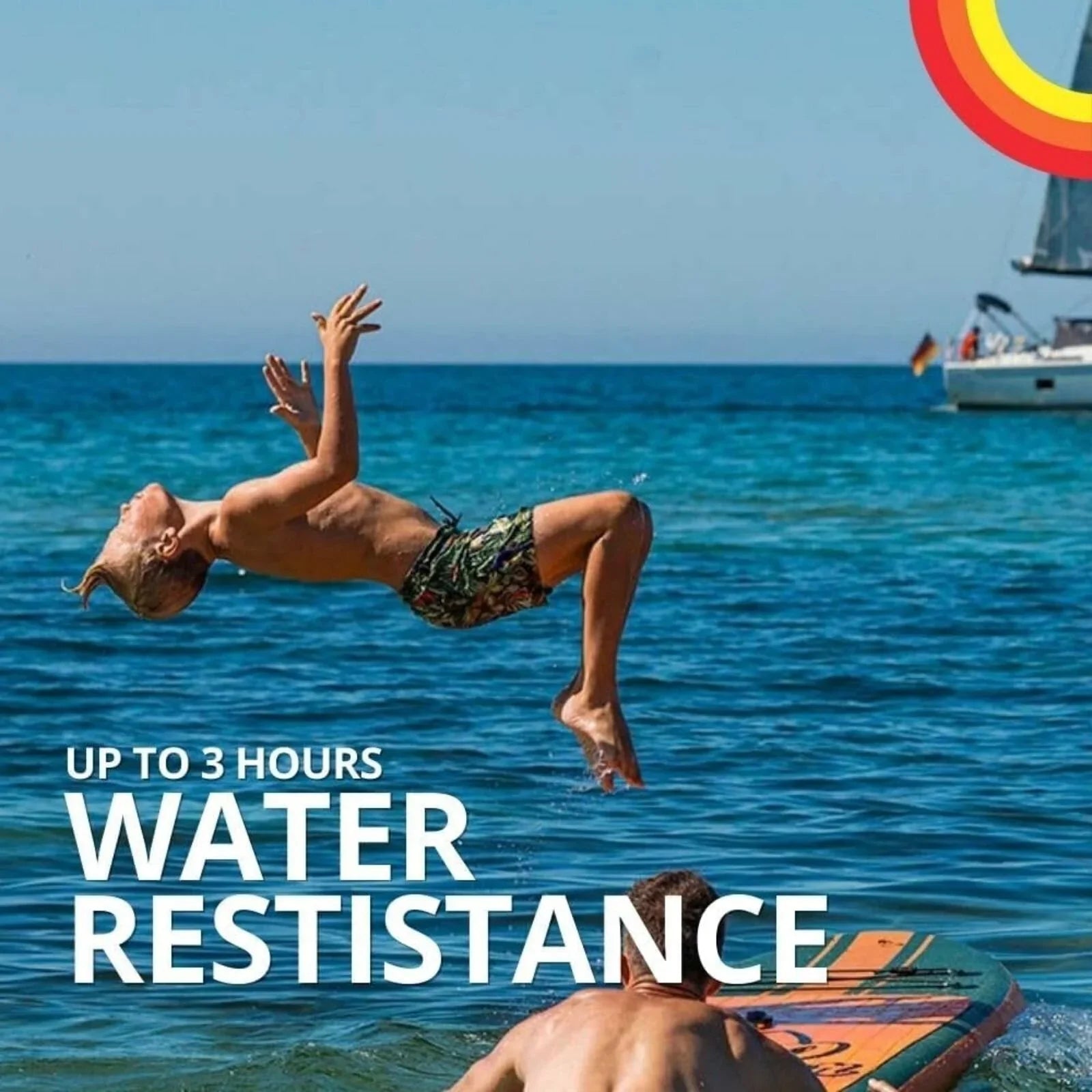 • Water resistant for up to 3 hours; suitable for use during swimming and water activities.