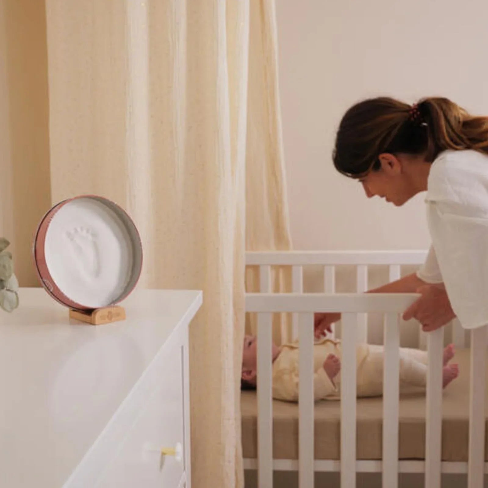 Transform those special moments when you want to immortalise your baby's tiny hand and footprints into lasting memories. Petit Artichaut Baby Hand & Foot Imprints Round Box provides everything you need to preserve these precious memories professionally. Its elegant olive tree-themed design perfectly complements both nursery and living room décor. The hypoallergenic clay formula protects your baby's sensitive skin, whilst the included wooden stand and roller ensure perfect results. The stylish metal box serves both functional and decorative purposes. This set makes an ideal gift for new parents, preserving the most precious moments of your baby's growth journey.