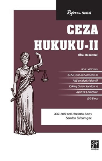 CEZA HUKUKU – II (ÖZEL HÜKÜMLER) BİRİNCİ BÖLÜM *KASTEN ÖLDÜRME *Suçun Maddi Unsurları*Suçun Özel Görünüş Biçimleri*TAKSİRLE ÖLDÜRME*Suçun Maddi Unsurları*Fail, Suçun Konusu ve Mağdur *Kusurluluk İKİNCİ BÖLÜM*KASTEN YARALAMA SUÇU*NETİCESİ NEDENİYLE AĞIRLAŞMIŞ YARALAMA*TAKSİRLE YARALAMA ÜÇÜNCÜ BÖLÜM*MALVARLIĞI ALEYHİNE İŞLENEN SUÇLAR*HIRSIZLIK SUÇU*YAĞMA SUÇU*MALA ZARAR VERME*DOLANDIRICILIK*ORTAK HÜKÜMLER DÖRDÜNCÜ BÖLÜM*MİLLETE VE DEVLETE KARŞI SUÇLAR*KAMU İDARESİNİN GÜVENİLİRLİĞİNE VE İŞLEYİŞİNE KARŞI SUÇLAR*ZİMMET*İRTİKAP*RÜŞVET CEZA HUKUKU – II SORULARI ADLÎ HÂKİMLİK SORULARITanıtım Metni
