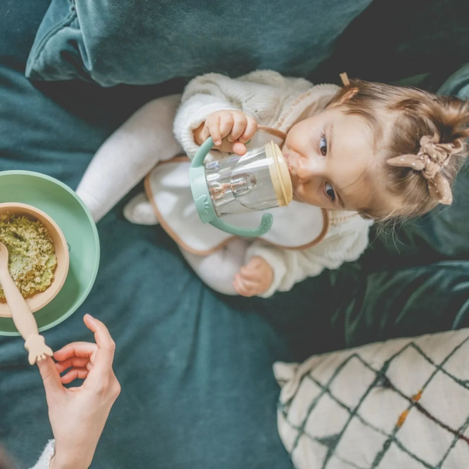 - With an ergonomic spout that promotes natural sucking like a bottle, this cup is ideal for transitioning from bottle to cup.