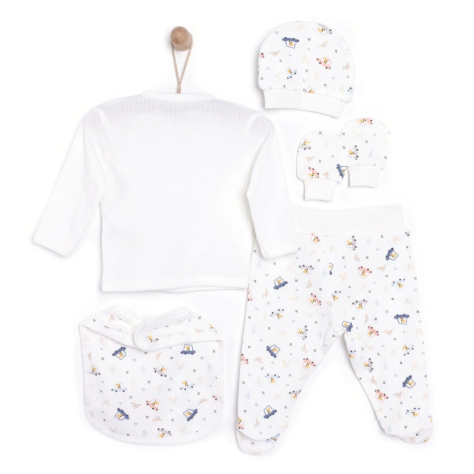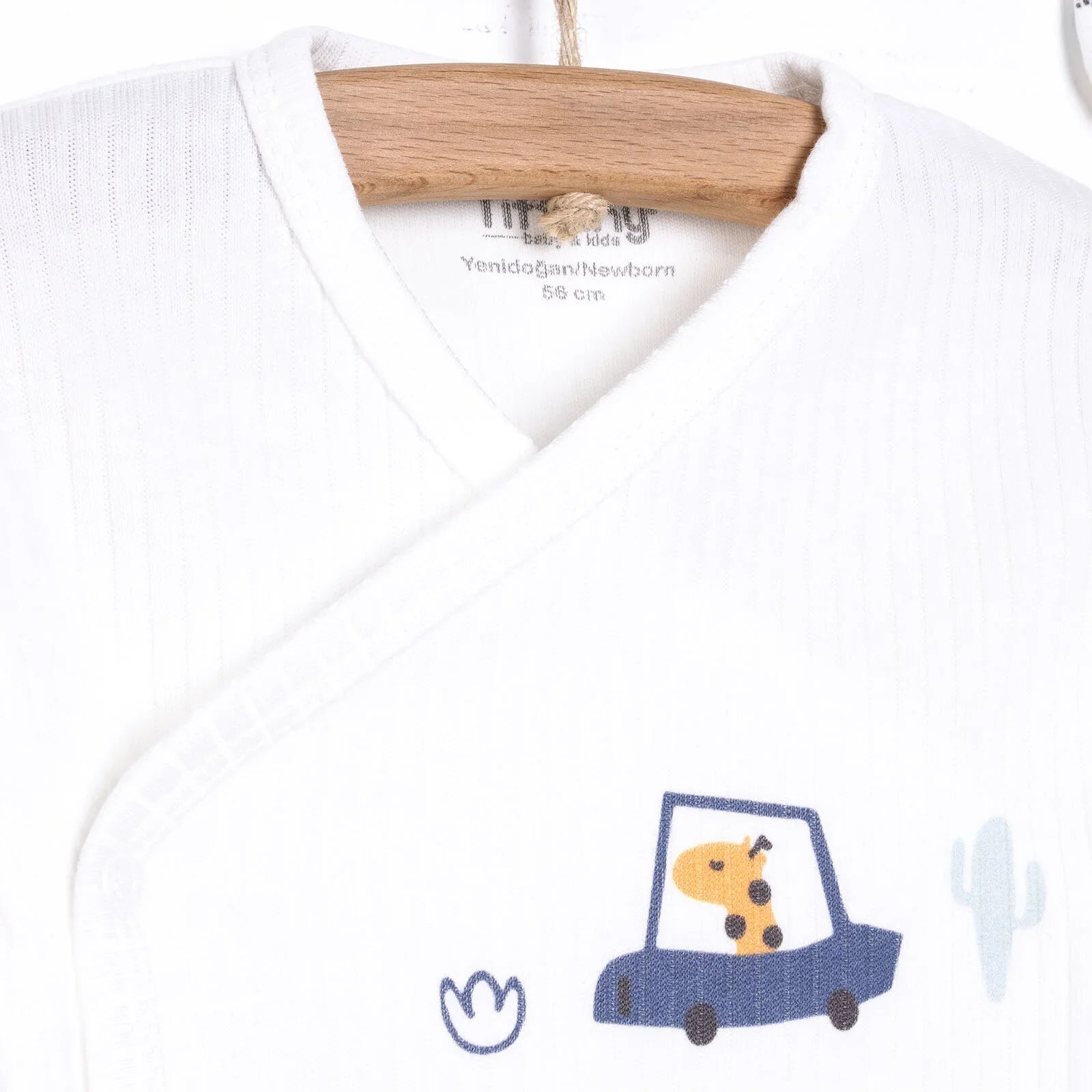 This sweet newborn set offers a soft touch to your baby’s delicate skin with its cotton fabric. Its breathable material and comfortable fit make it a practical yet stylish choice from the very first days.