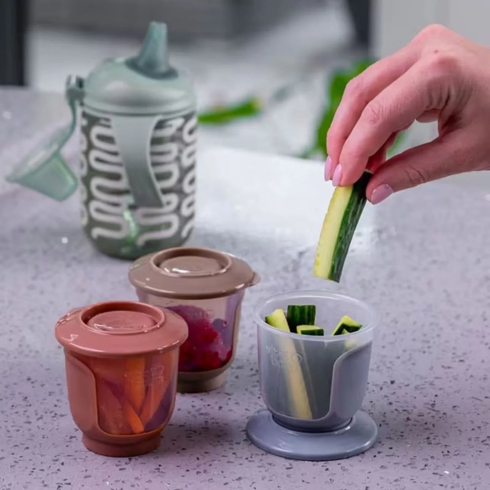 The NOURISH store & wean pots complement the rest of our baby feeding and weaning range, including bowls, plates and cutlery.,