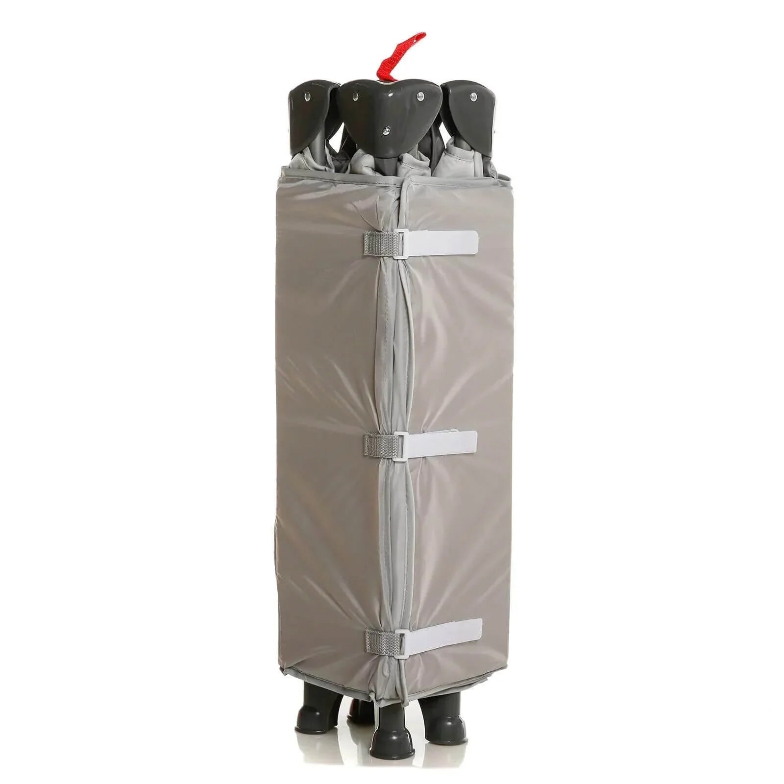 Unfold, place baby, and go! Portable with braked wheels, mesh windows, and a zippered bag. Use under supervision; no swaying or mezzanine.