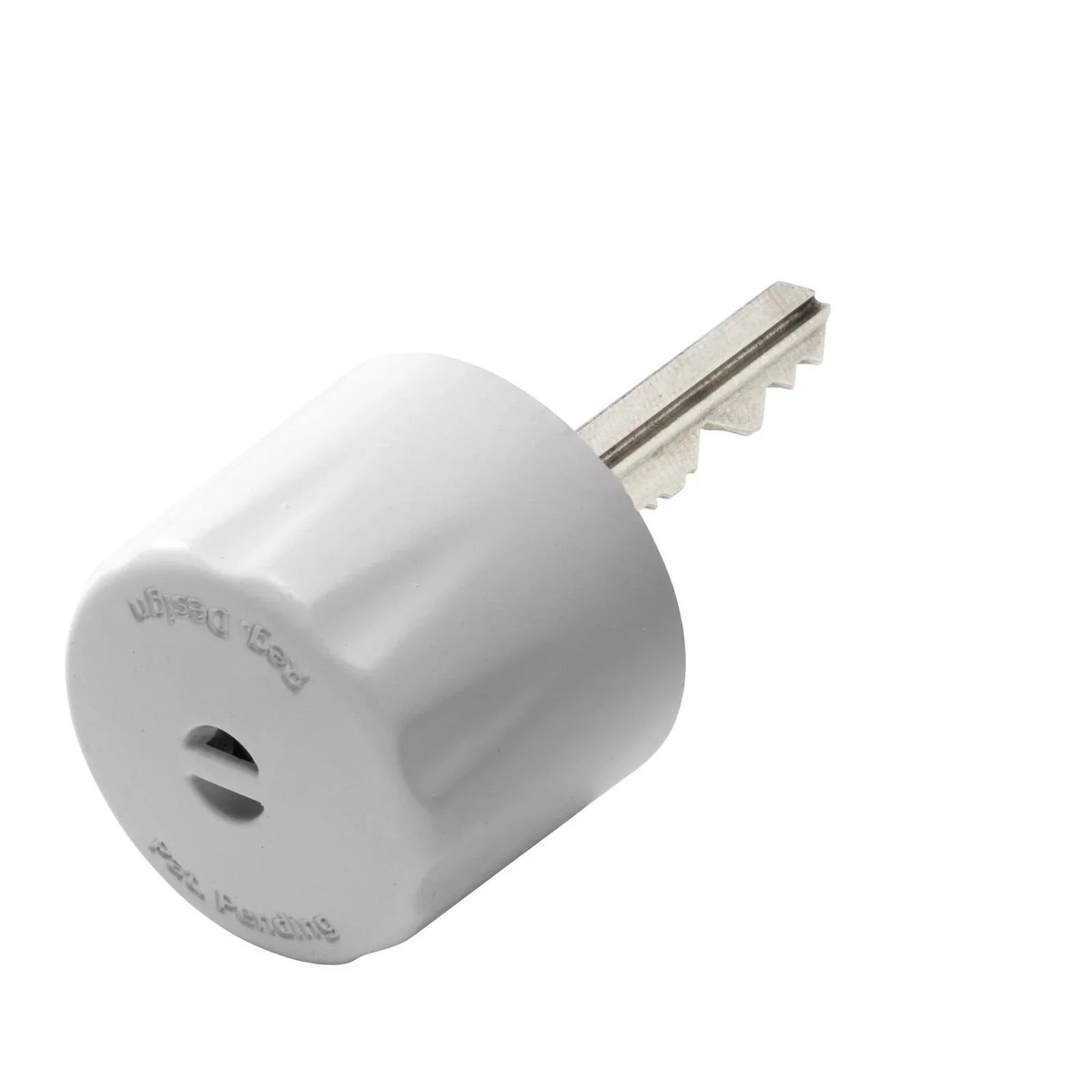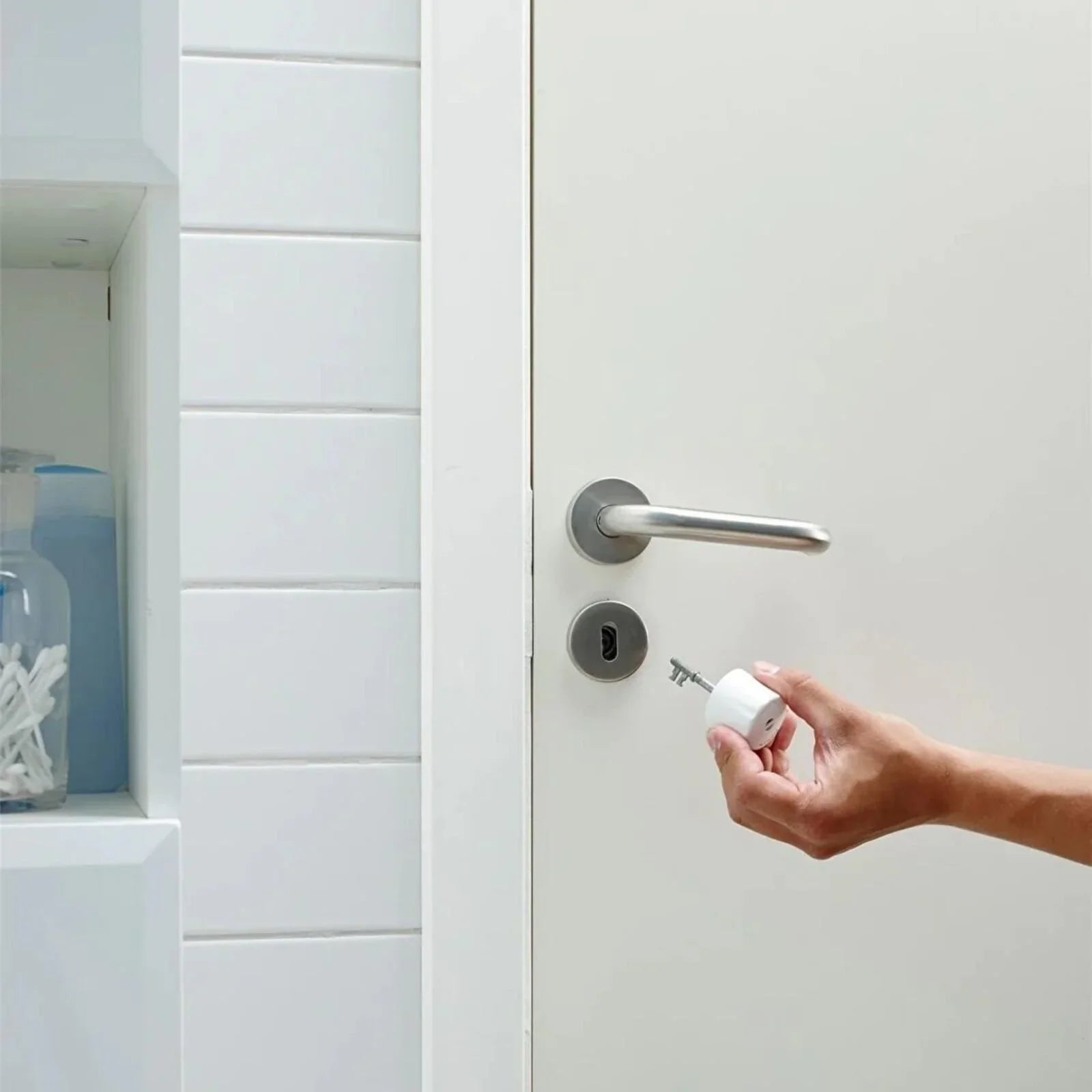 KeyGuard prevents even the most curious child from unlocking the door or locking themselves in a room. Simply fasten your key in the KeyGuard to childproof doors with locks. When turning the KeyGuard, your child will only be able to turn the guard and not the key itself. Thanks to the smart double locking mechanism, adults can still open the lock by pushing and turning the KeyGuard.