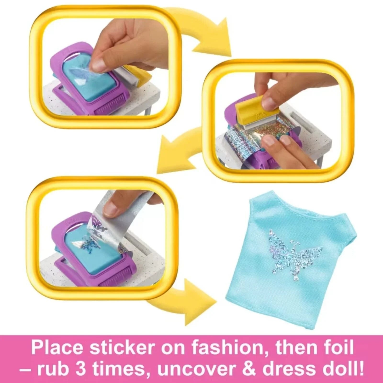 • Foil design feature allows kids to create their own custom looks for Barbie.