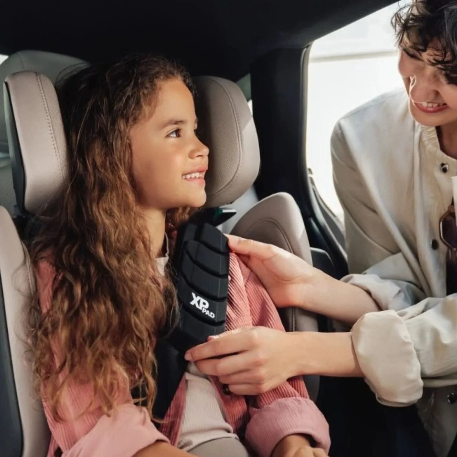 - Shock-absorbing foam XP-PAD protects your child's neck and chest in the event of a frontal collision