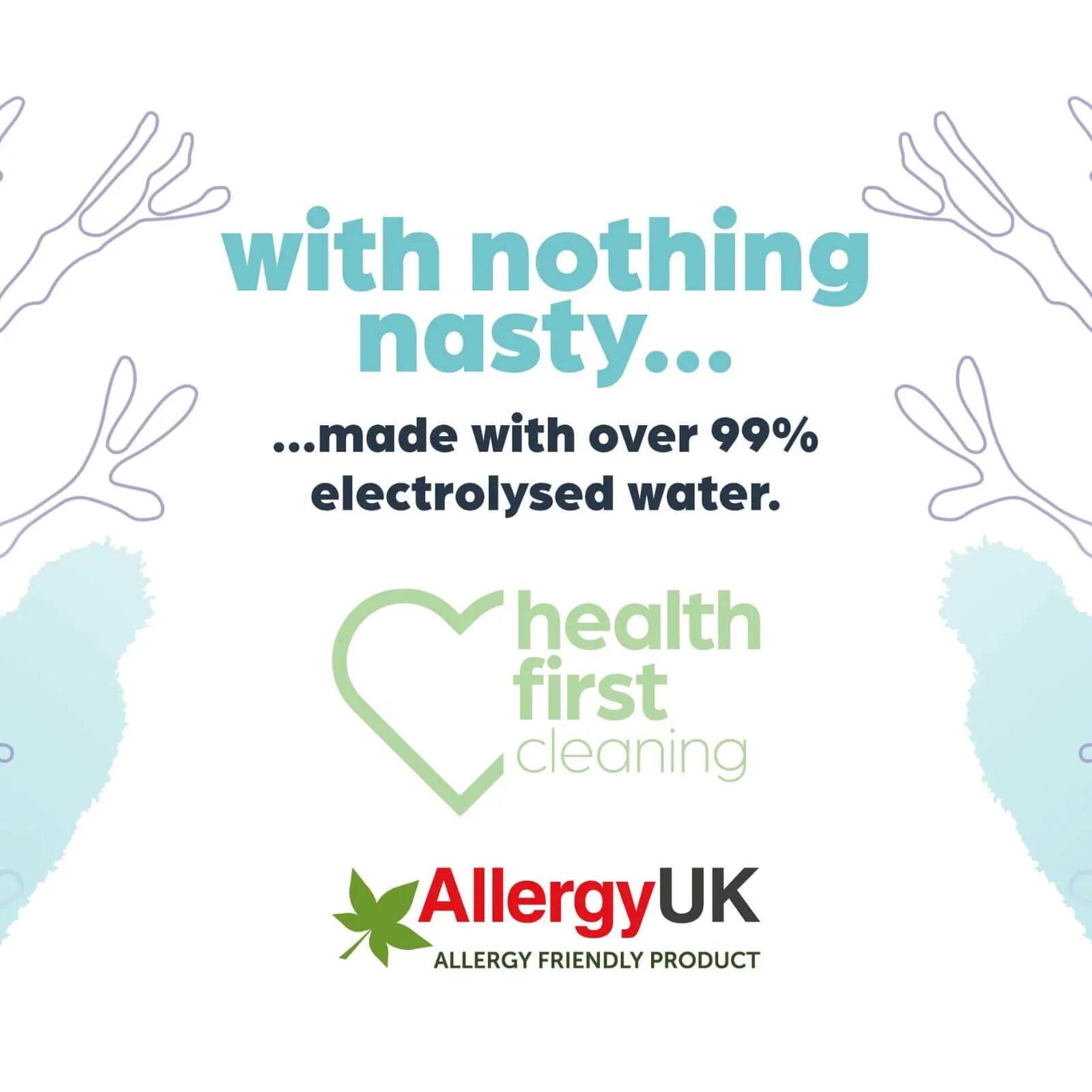 Recommended by Allergy UK, this gentle, pH-balanced cleaner is safe for sensitive skin and harmless if swallowed or inhaled, providing trusted hygiene for all surfaces.