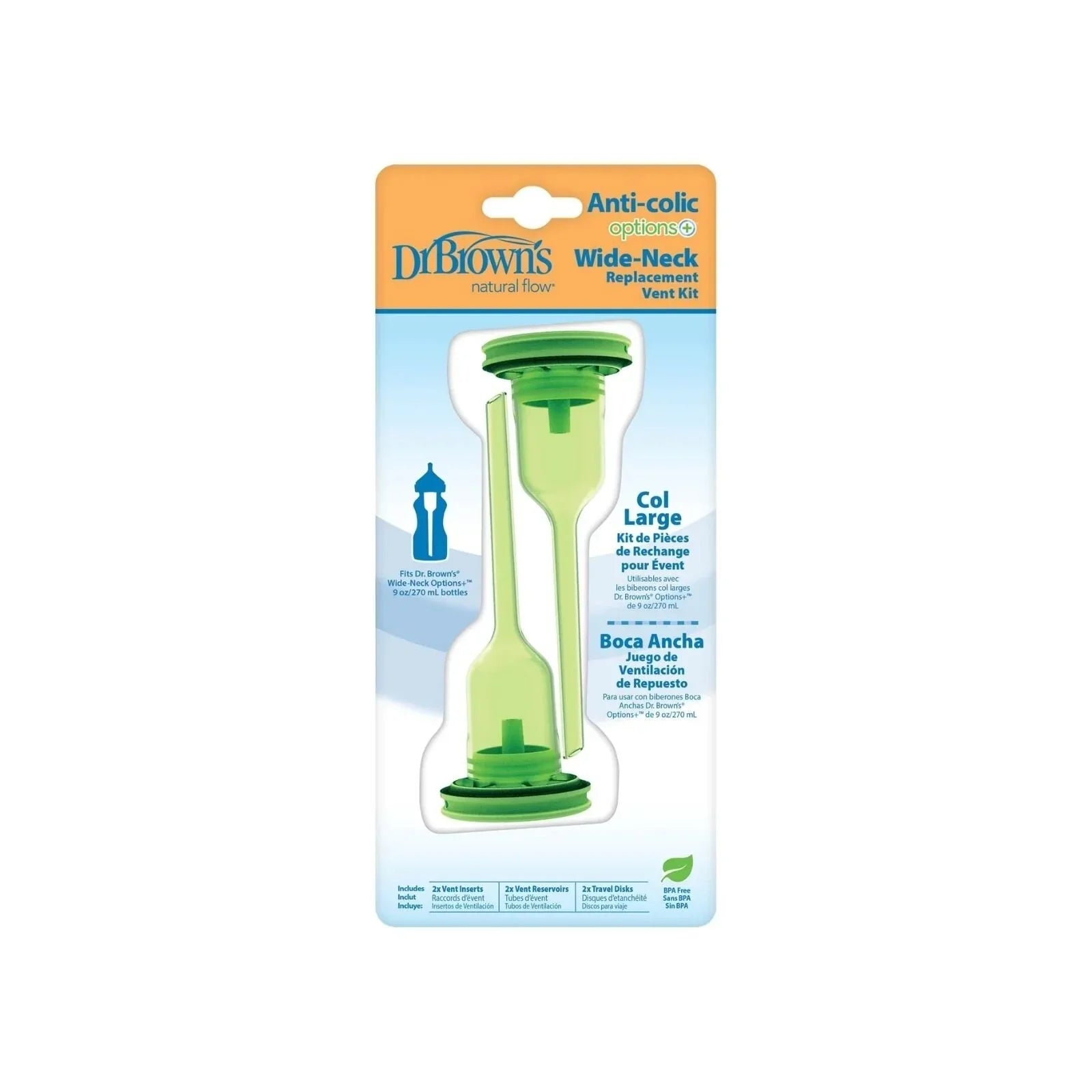 The Options+ Replacement Vent Kit includes the same pieces that come with Dr Brown’s Options+ bottles and exclusively fits Options+ Wide Neck 8 oz/250 ml bottles.