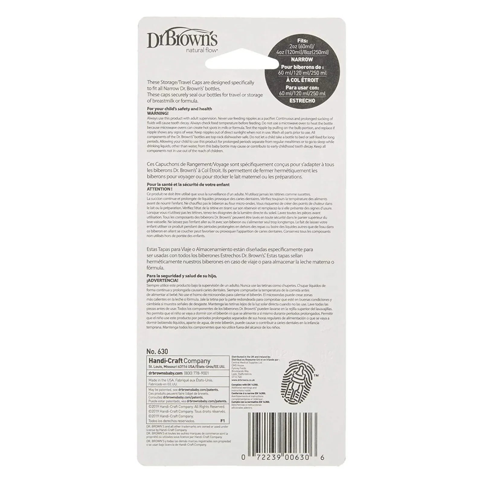 - Take the Dr Brown's Narrow Neck Storage Travel Caps along with your bottle wherever it goes to keep the contents safe and secure.