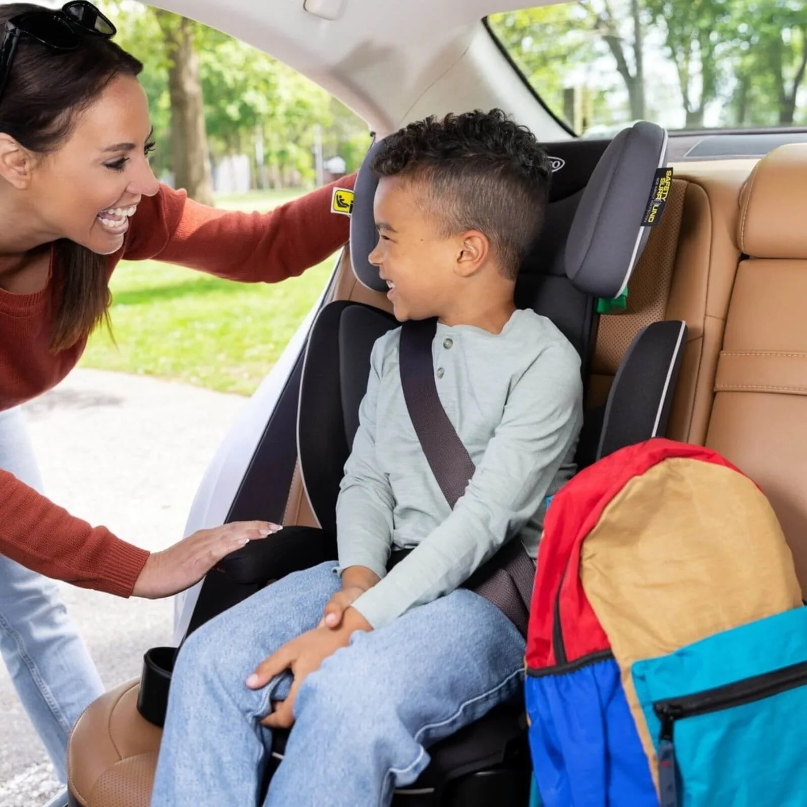 Functionality: As well as keeping them safe, this booster seat is designed around your child’s comfort. The padded armrests and soft comfy seats will keep them happy on long journeys, and they’ll have two retractable cupholders to keep their snacks, drinks, or games within reach.