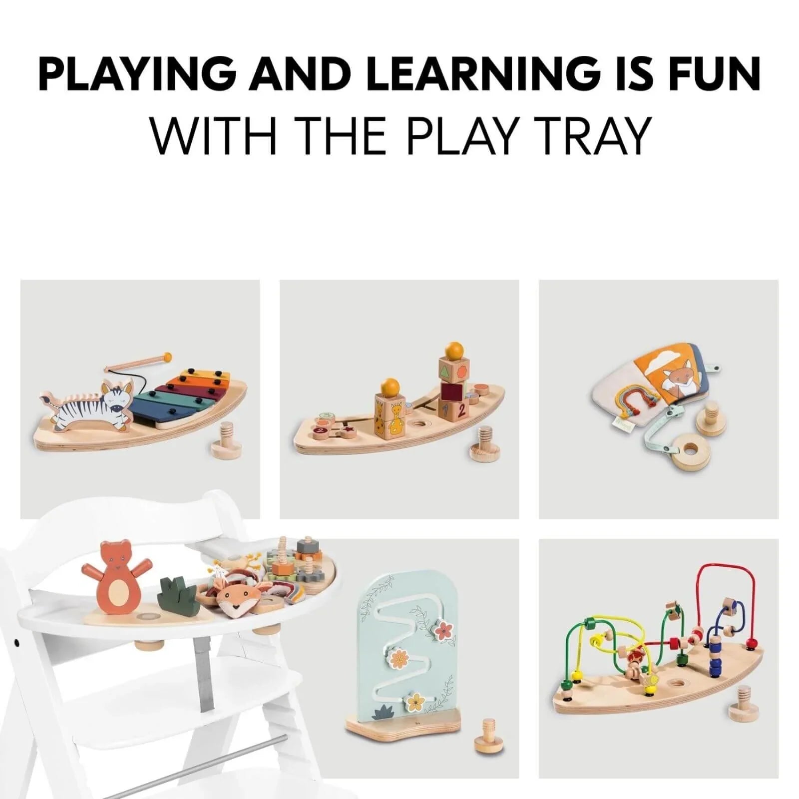 Functionality: Made of European beech wood, the toddler chair can be used for a long time up to 90 kg. The stable construction and the floor gliders make the highchair very tilt-proof.