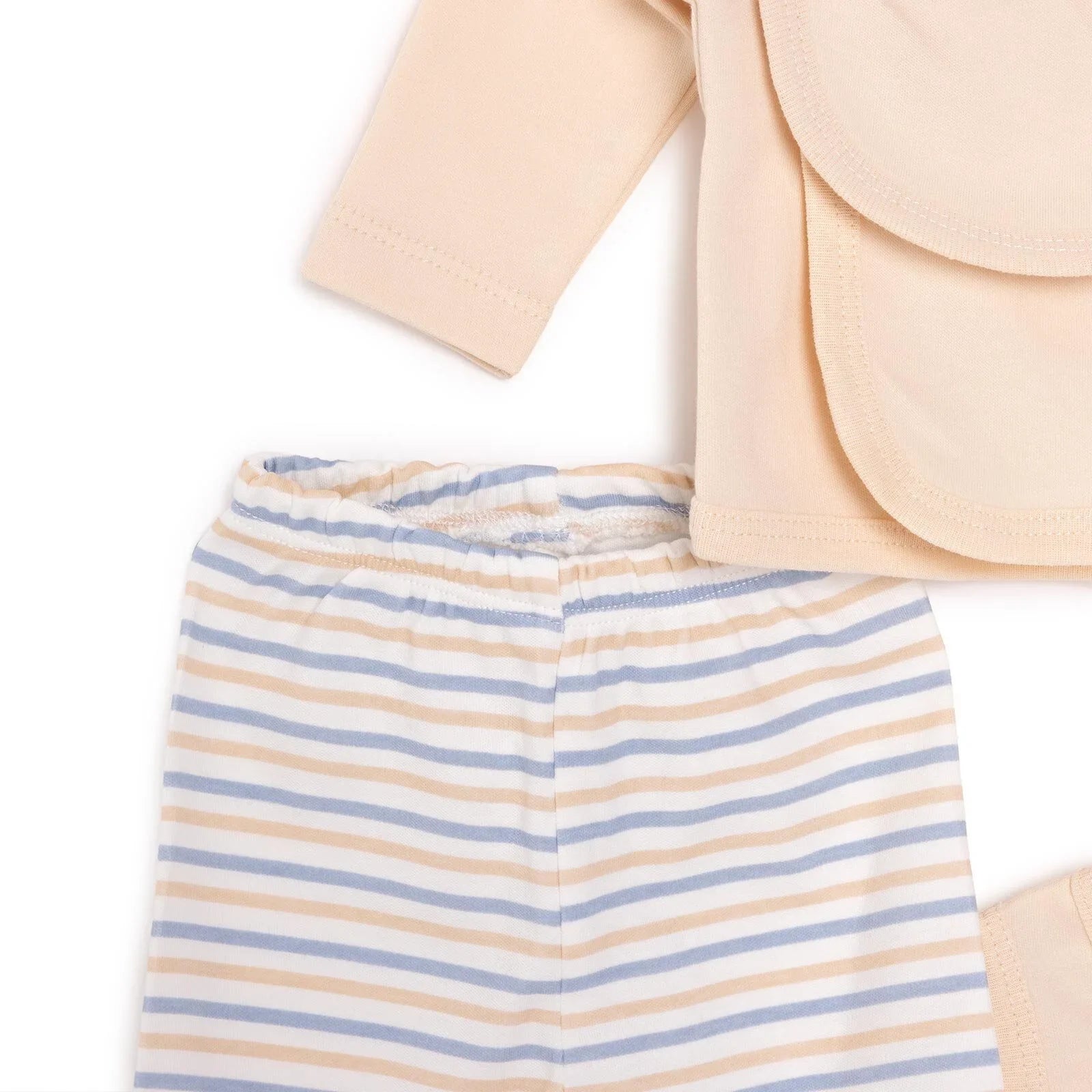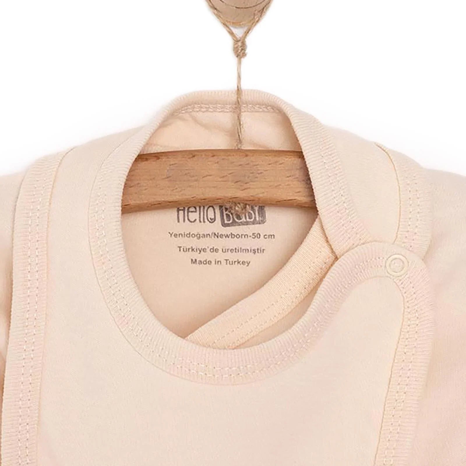 This sweet newborn set offers a soft touch to your baby’s delicate skin with its cotton fabric. Its breathable material and comfortable fit make it a practical yet stylish choice from the very first days.